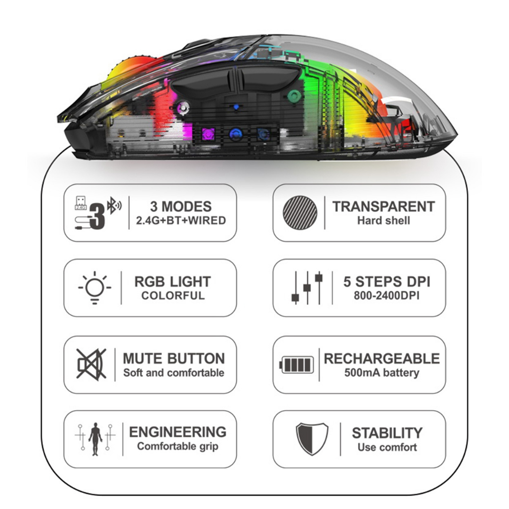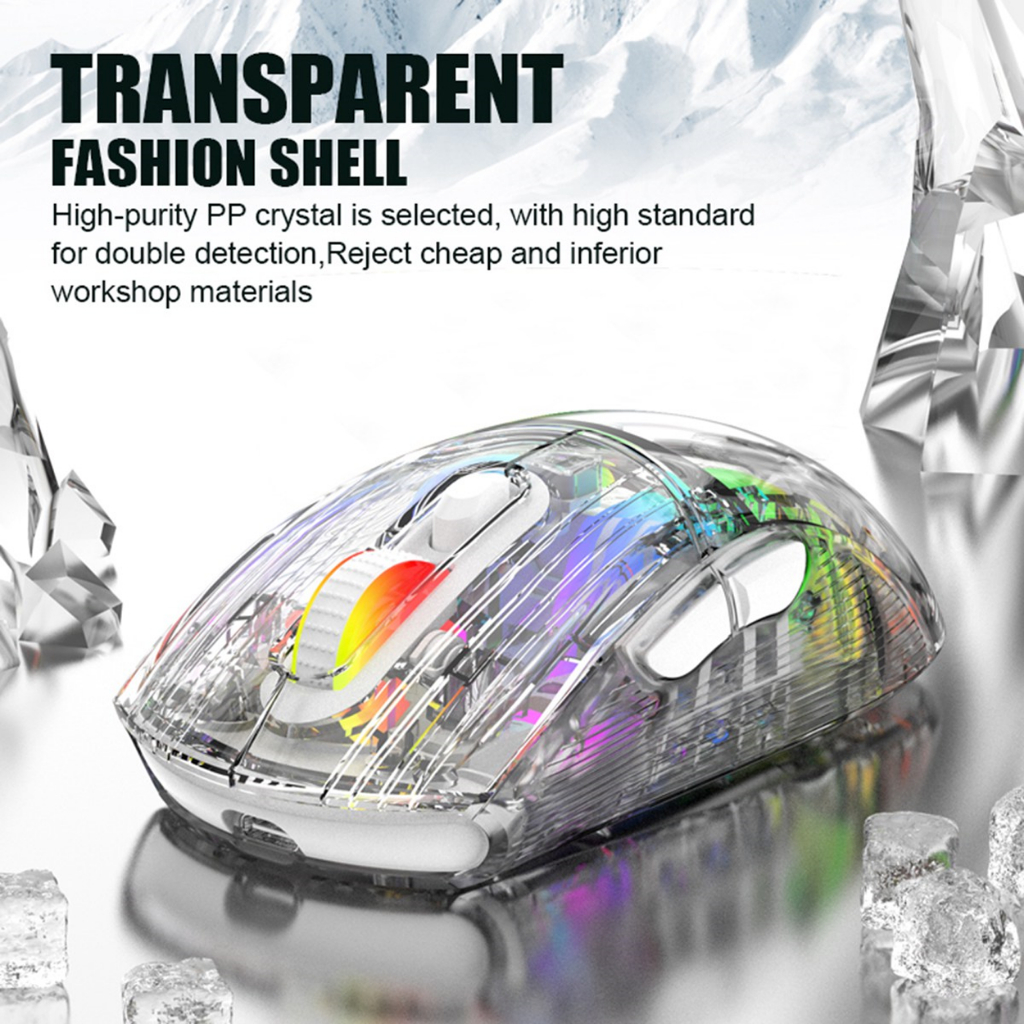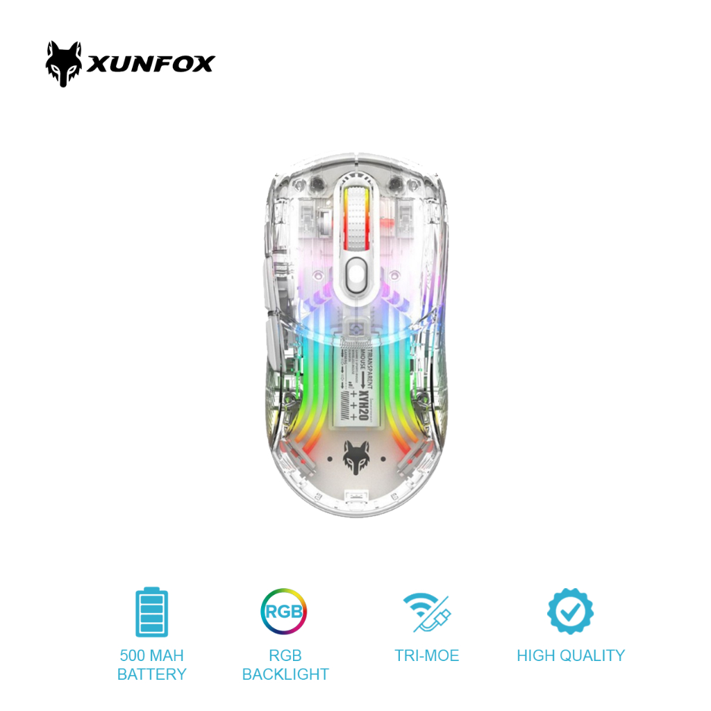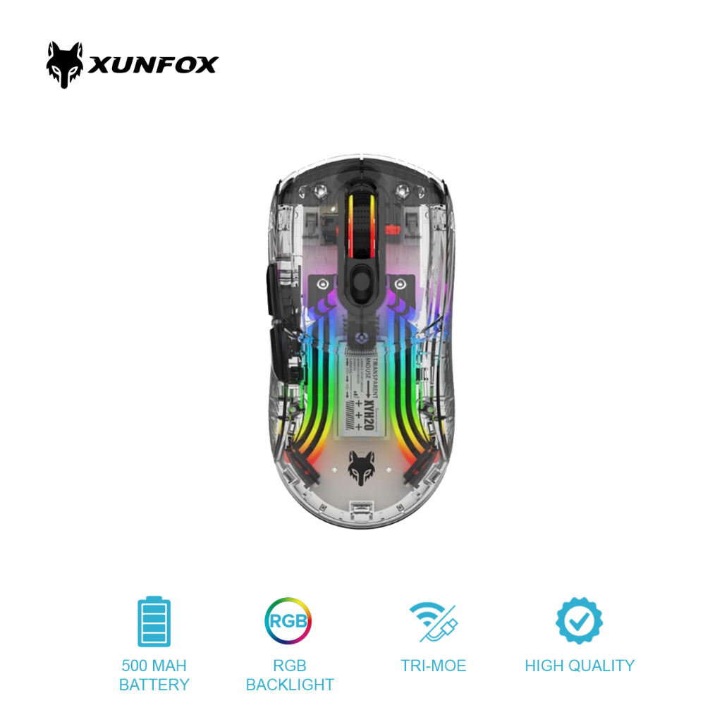 Gigaware Xunfox XYH20 Transparent Mouse RGB Wireless Wired Bluetooth 2.4G Tri-Mode Gaming Mouse