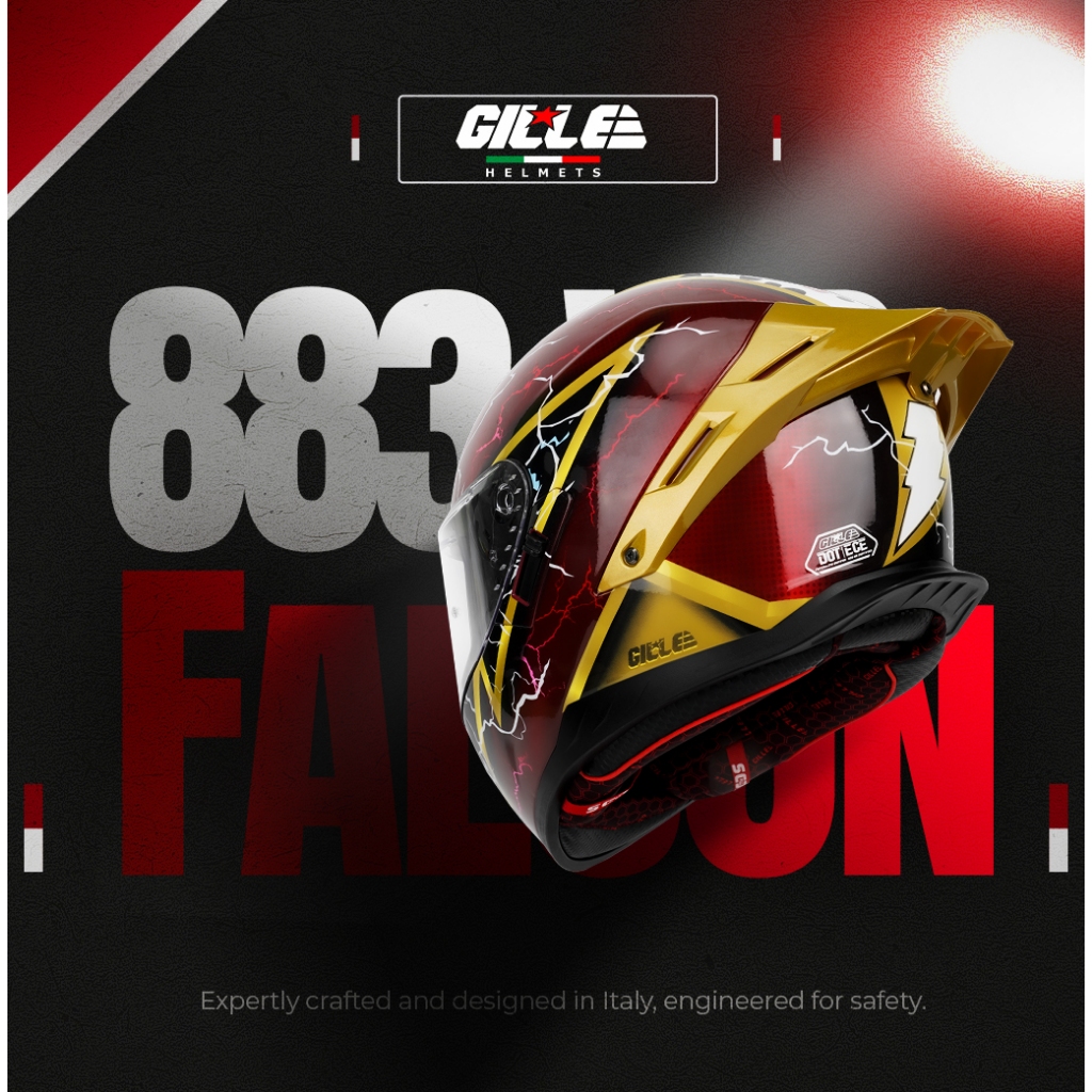Gille Helmet 883 FALCON Red White Motorcycle Helmet Full Face Dual Visor With Keychain