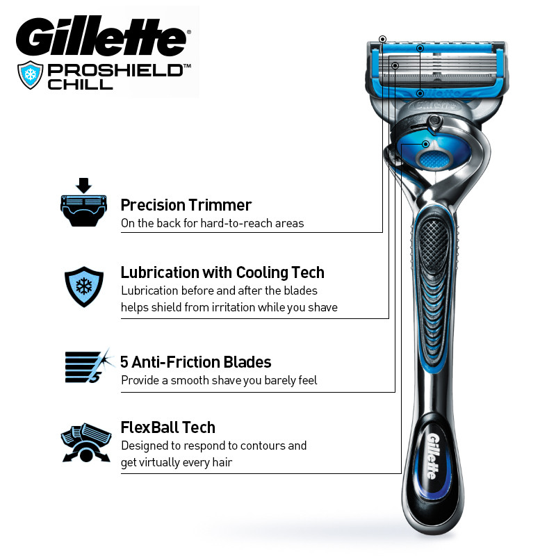 Gillette Fusion 5+1 Proshield Chill Razor 1 Handle 6 Blades Gentle and Smooth Shaver Men's Razor