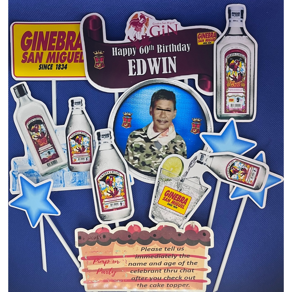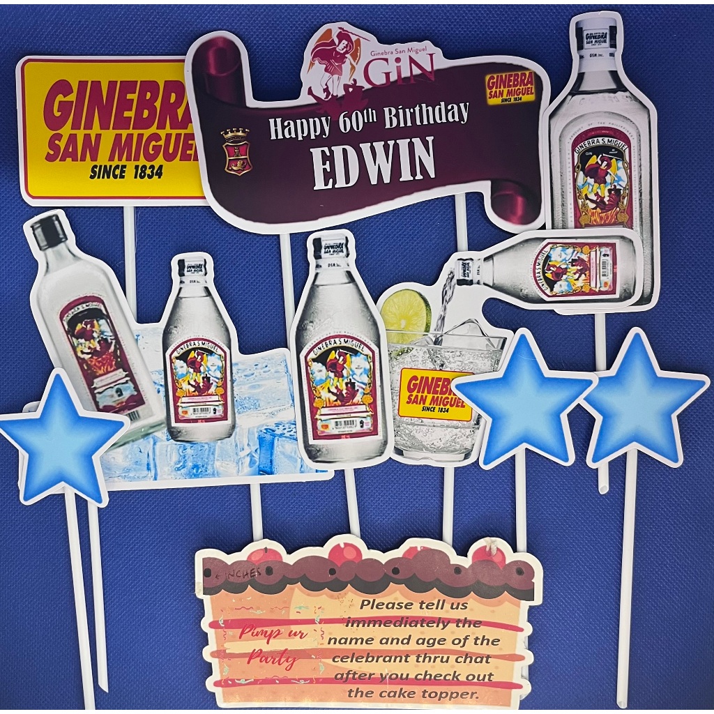 Ginebra Design Cake Topper with personalized name at age ng celebrant