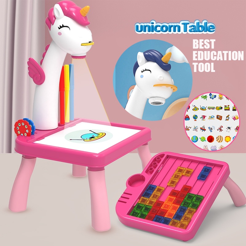 Girl boy toys drawing projector toys for kids play arts & crafts learning education unicorn drawing borad kids painting tablet birthday gift for children age 3