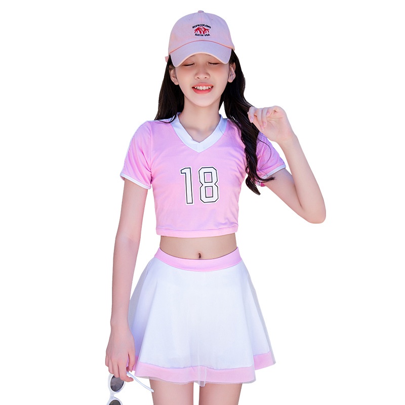 Girls' Swimwear Big Kids Split Boxer Skirt Girls 8-14 Years Old Sports Korean Student Swimsuit Dress