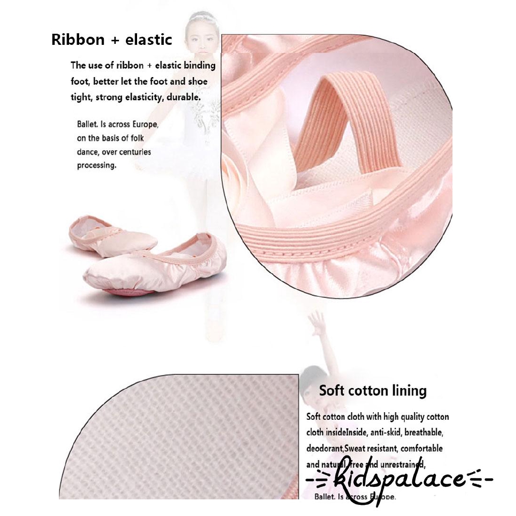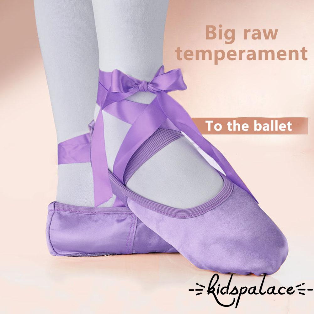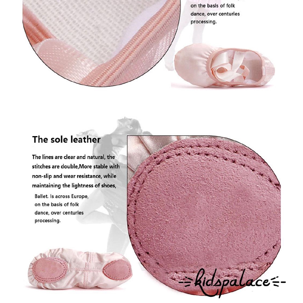 BbQ-Girls Ballet Shoes,Toddler Little Kids Gymnastics Flats with Ribbon, Split Suede Sole Dance Shoes