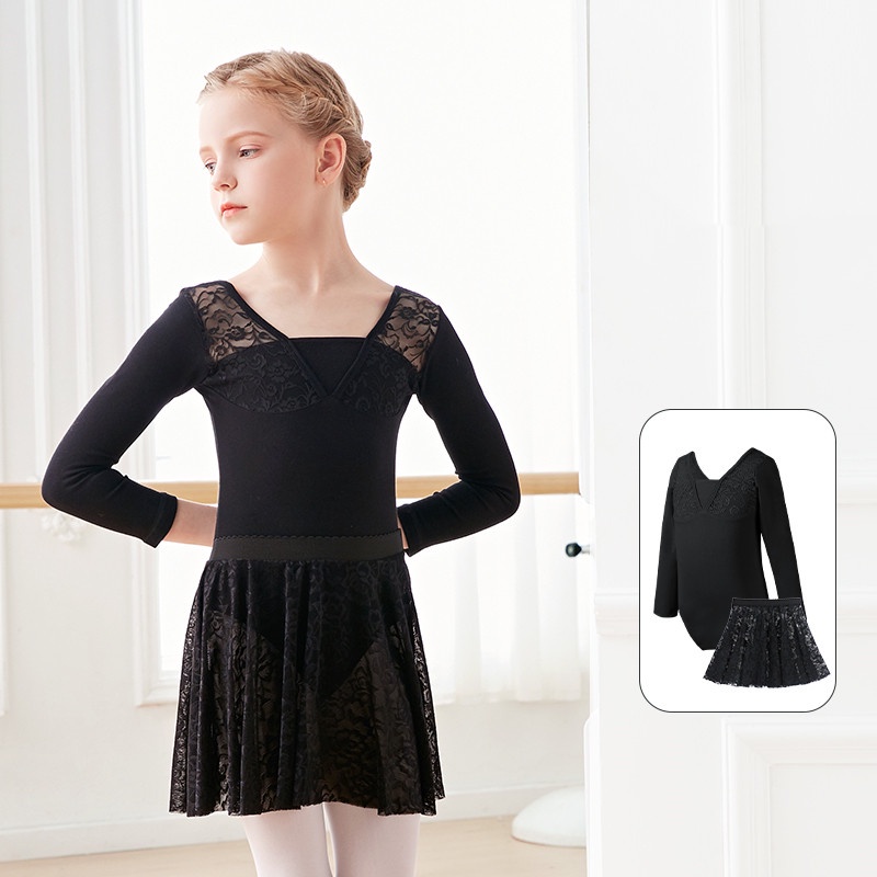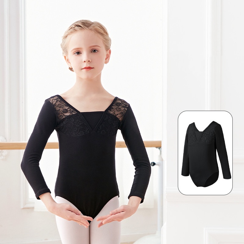Girls Kids Ballet Leotard Gymnastics Dance Leotard Child Dance Costume Long Sleeve Bow U Back Lace Splicing Bodysuit Dancewear