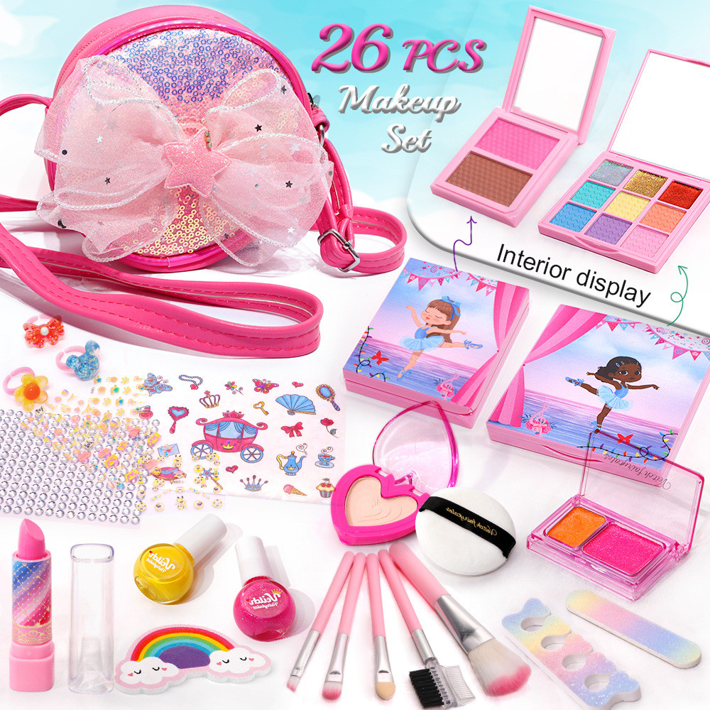 Girls Pretend Play Makeup Set Girls Fake Cosmetic Toys Pretend Makeup Set Girls Toys Age 3-8 Fashion Cosmetic Bag Holiaday