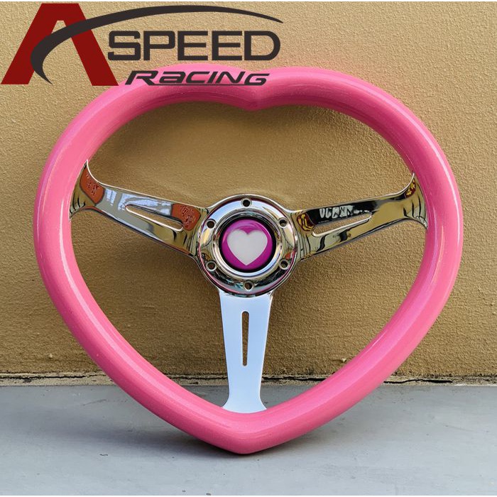 Girly Pink Car Interior Silver Chrome Spoke Heart Shaped Steering Wheel JDM Refitting ABS Heart Steering Wheel Pink White 14inch Universal Steering wheel