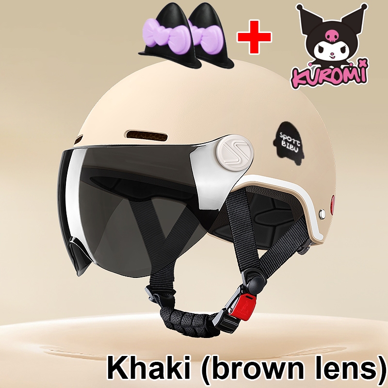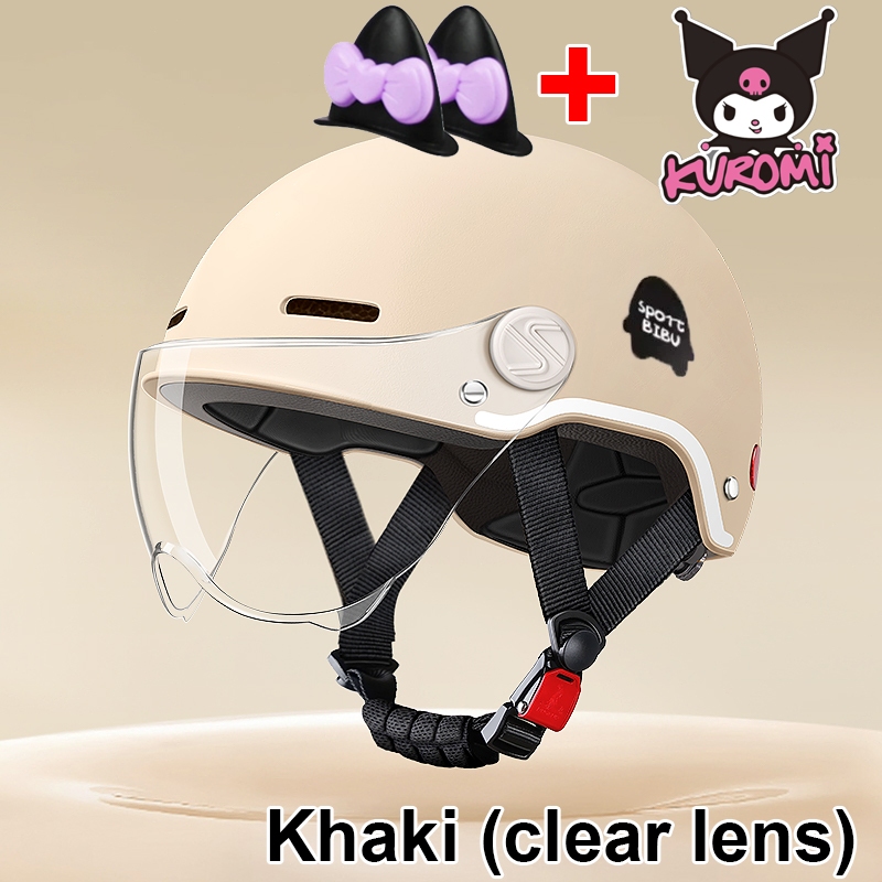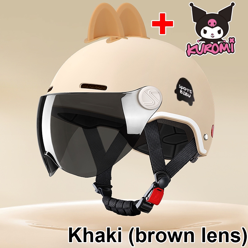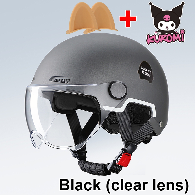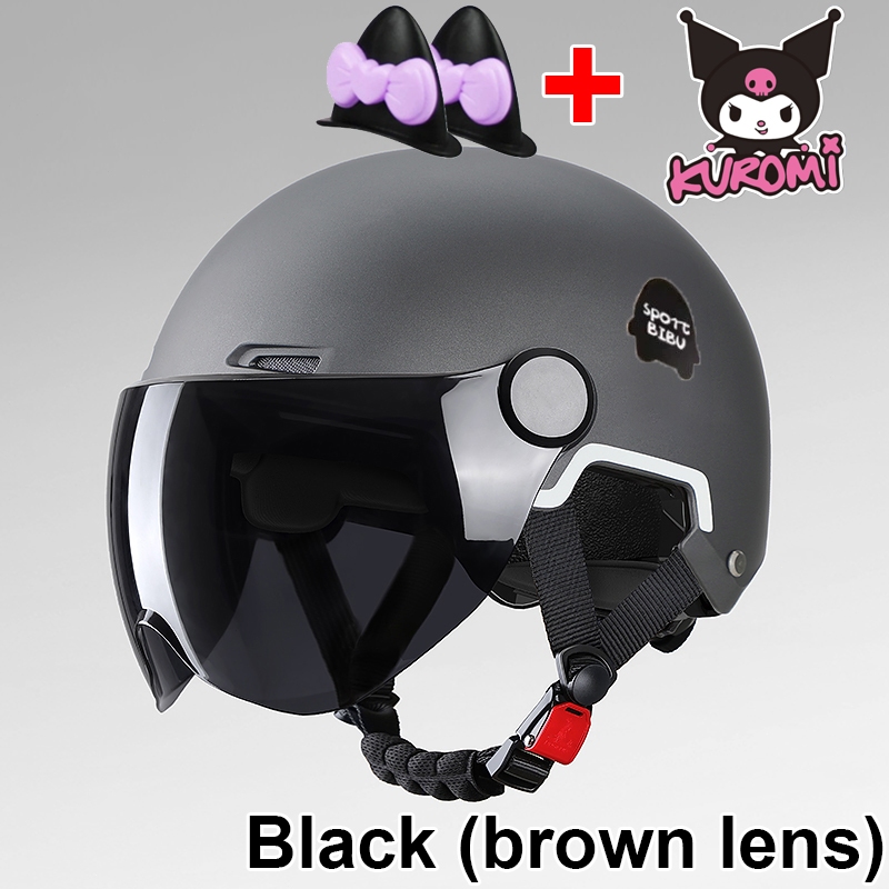 Give away Kuromi stickers cute helmet for women cat ear half face helmet for motorcycle ebike
