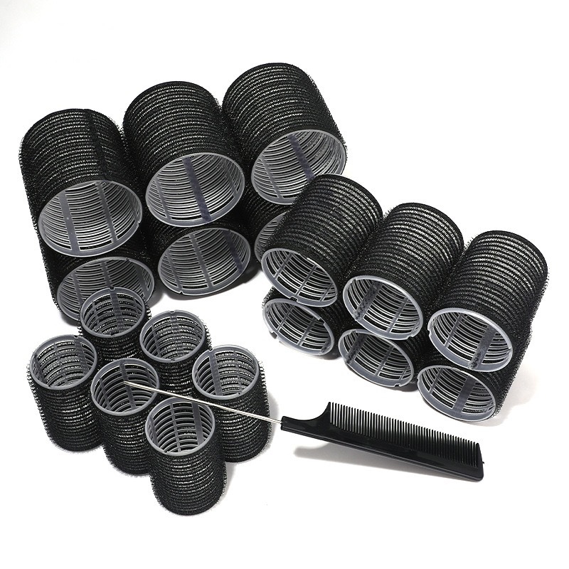 Gladking 18IN1 Multiple Size Magic Pro Hair Black Rollers With Comb Set