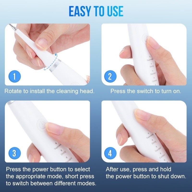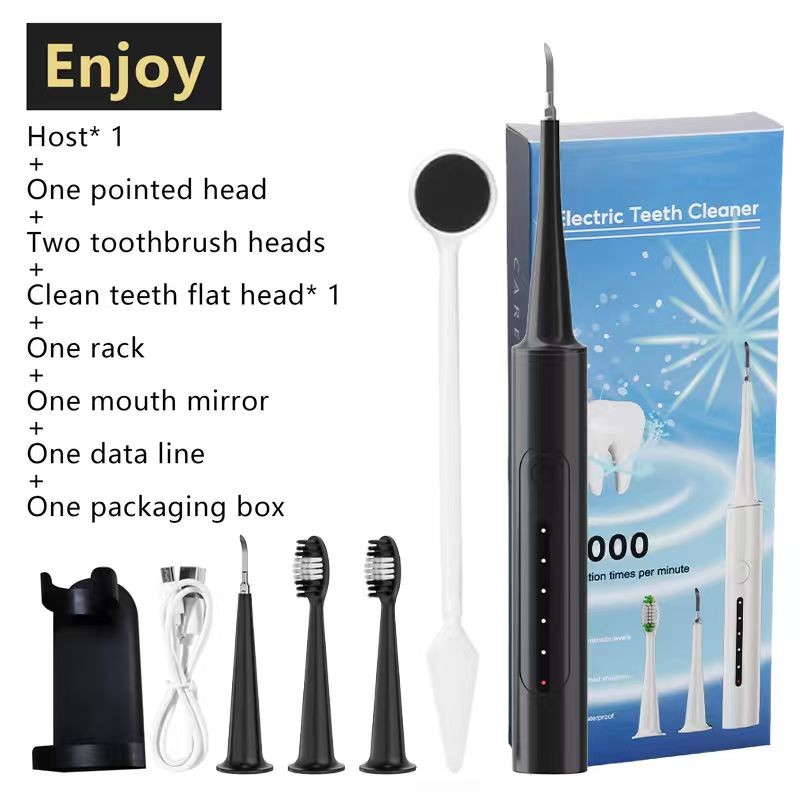 Portable Electric Tooth Cleaner with 5 Adjustable Modes and 2 Replaceable Cleaning Heads and support