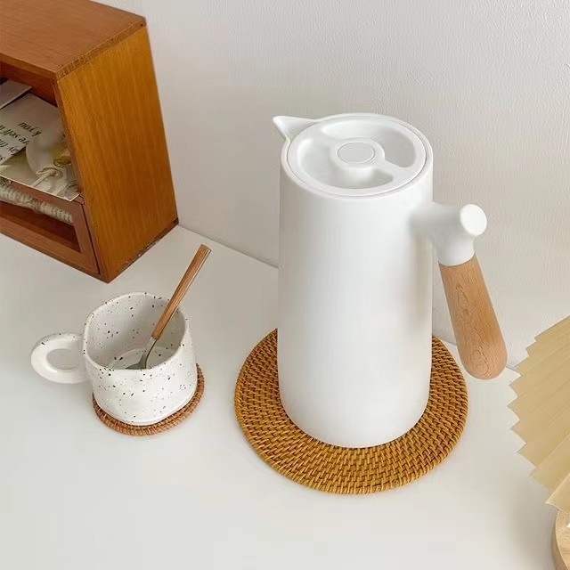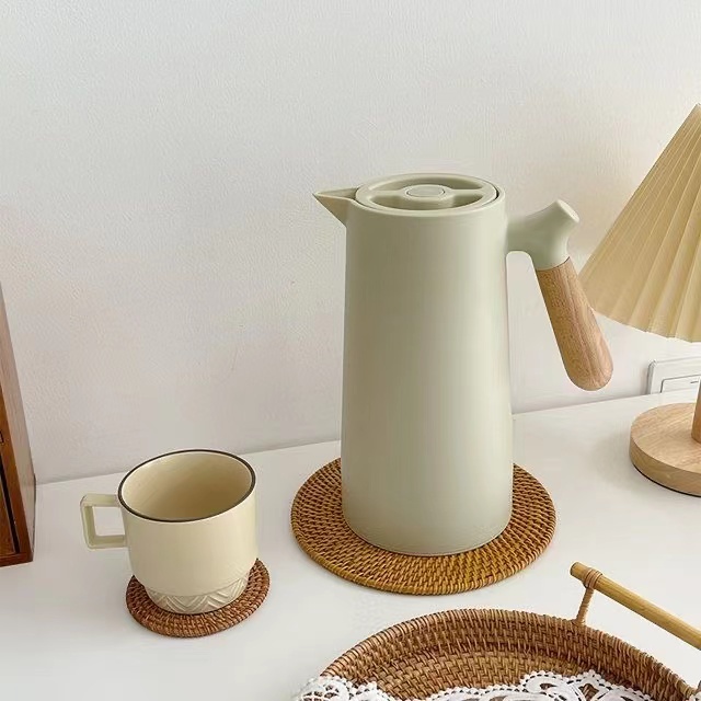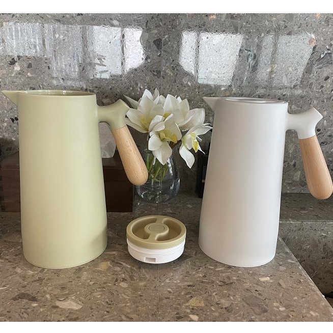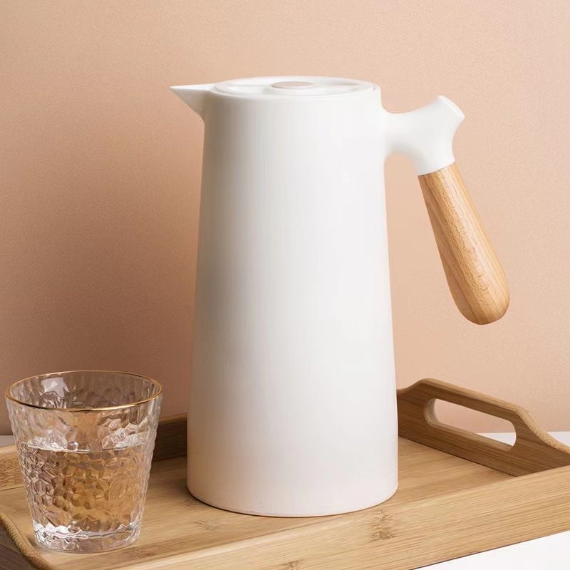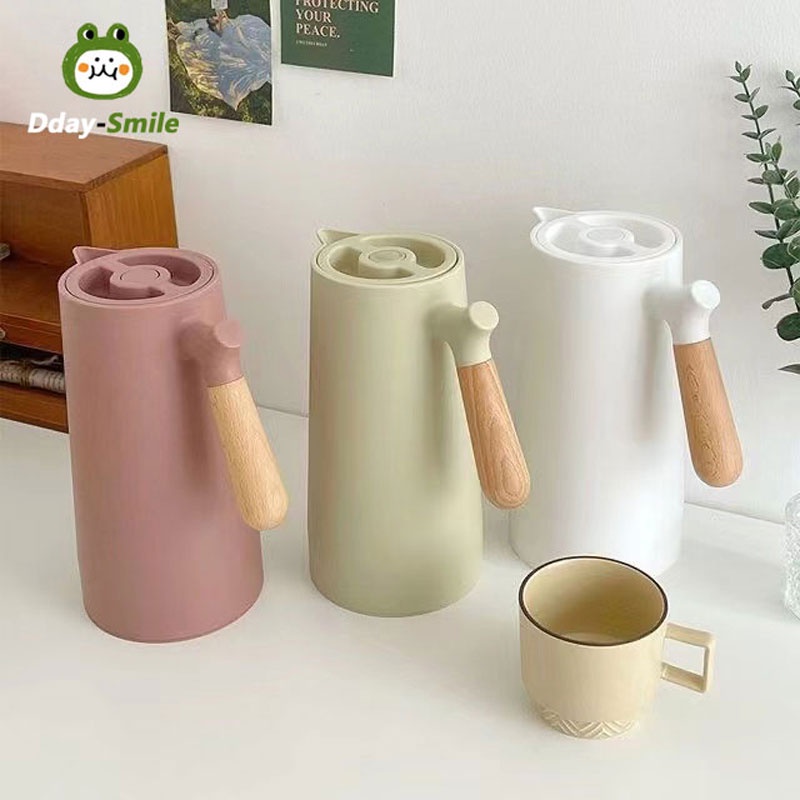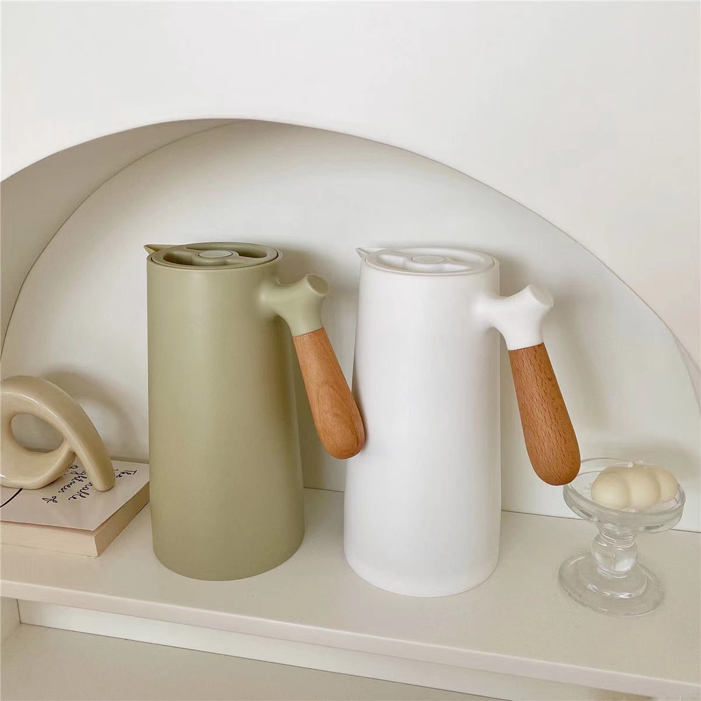 Nordic Vacuum Insulated Flask Minimalist Thermos 1 Liter 24 Hour Heat Kettles Airpots Wooden Handle