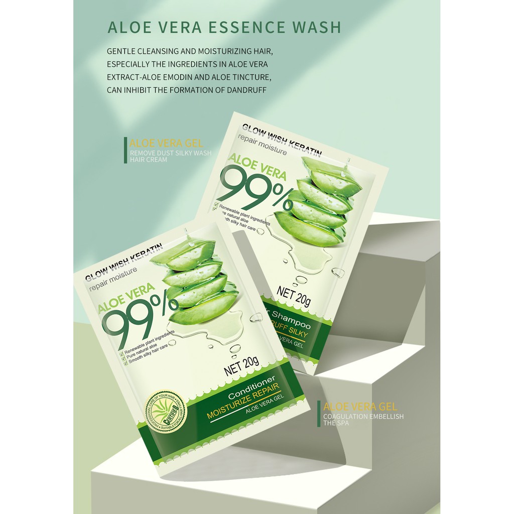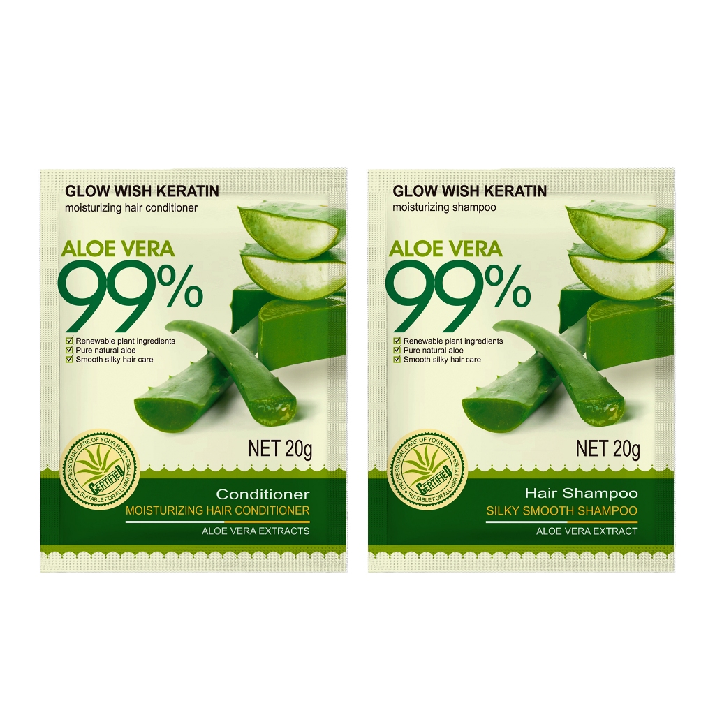 BTS Glow Wish Keratin 99% Aloe Vera Hair Shampoo Hair Conditioner 20g