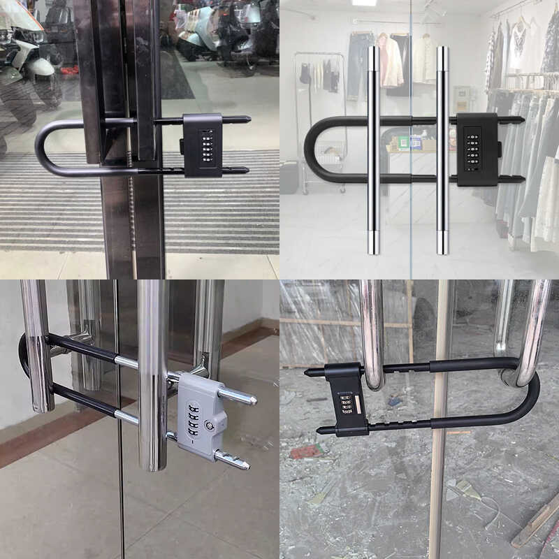 Glass Door Lock for Storefront Motorcycle Sliding Double Door Lock Door Password U-Shaped Padlock Wa