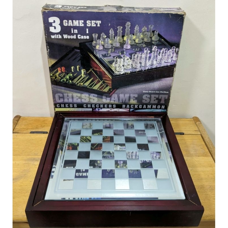 Glass Game Set (3 in 1) Chess, Checkers, Backgammon