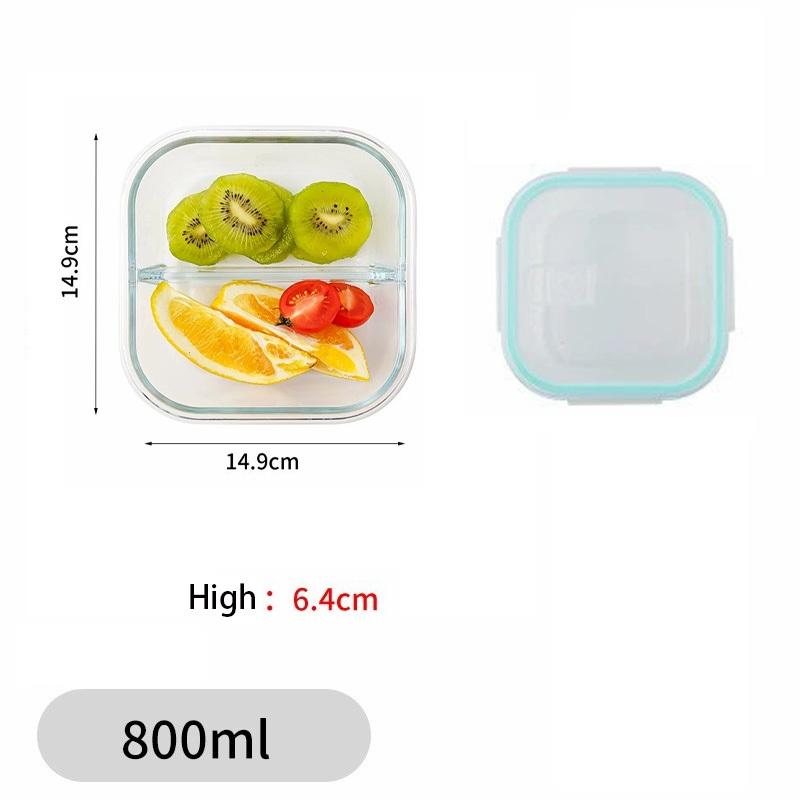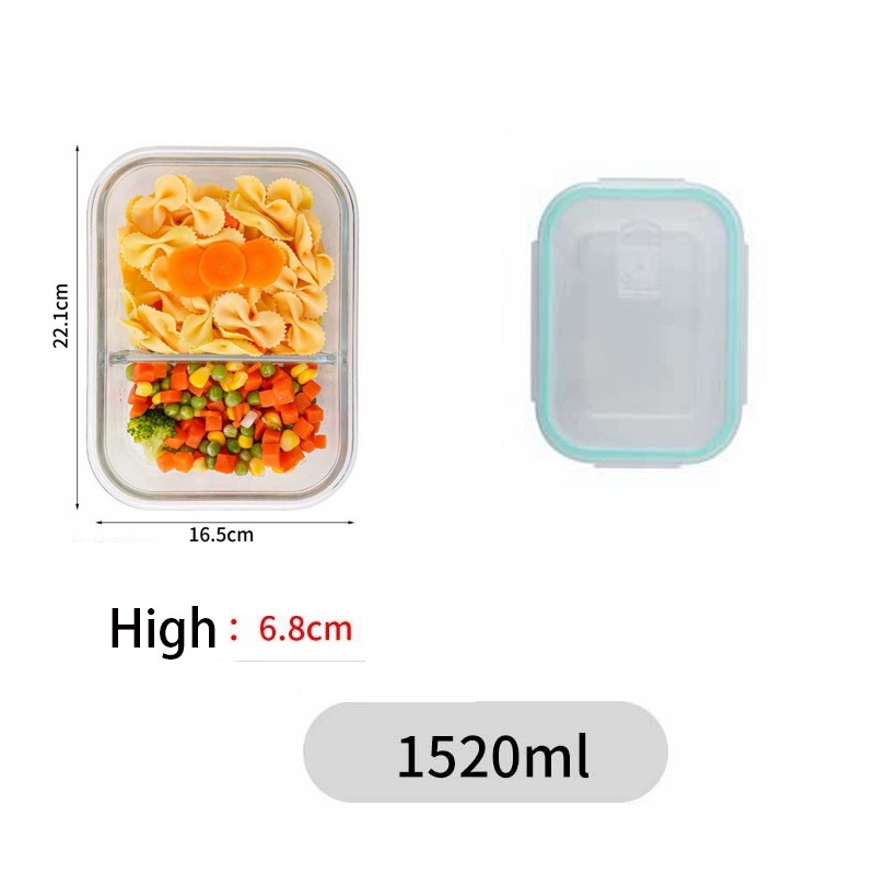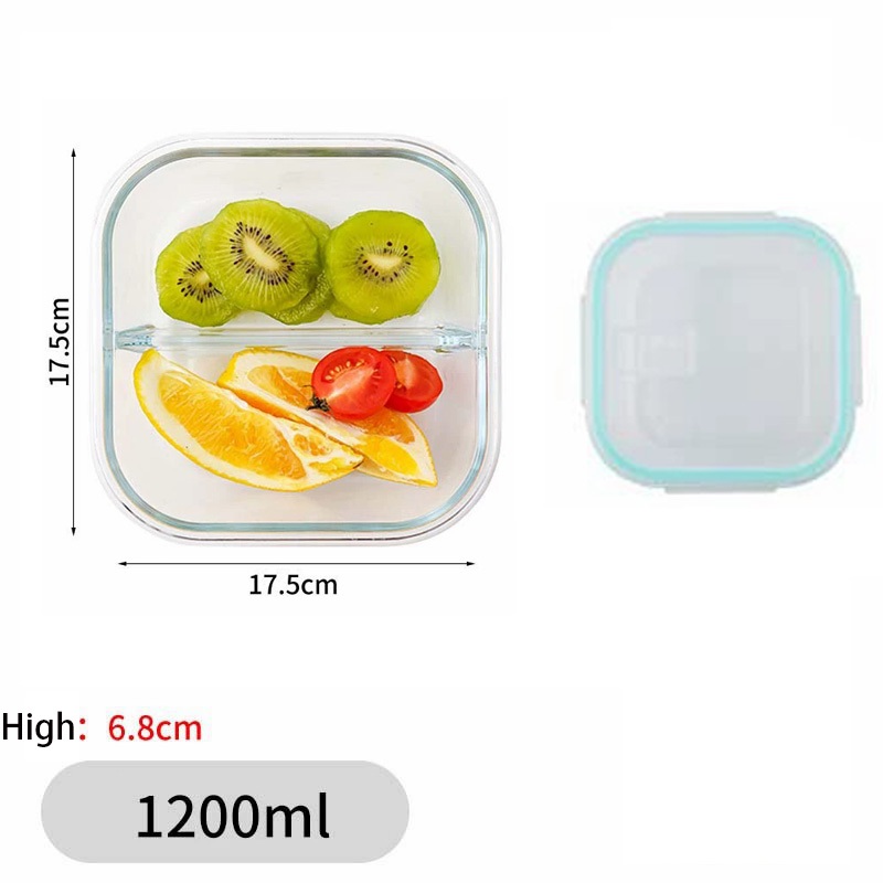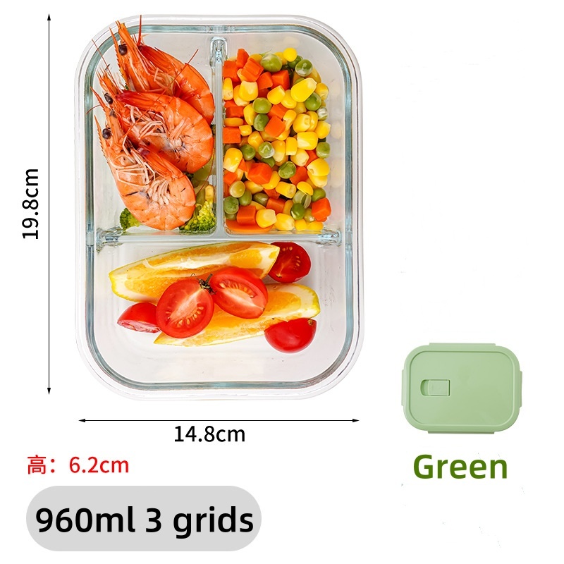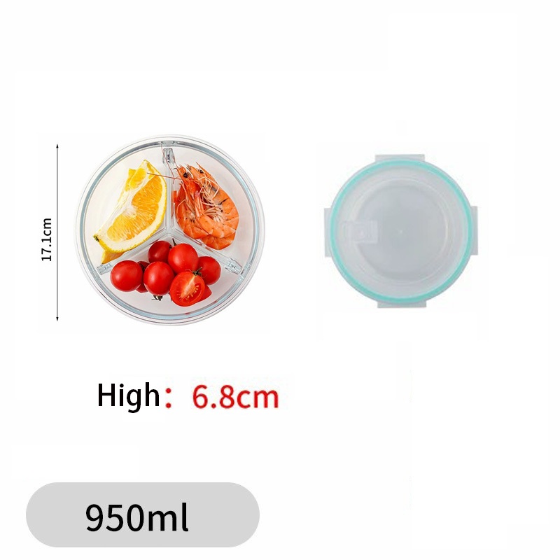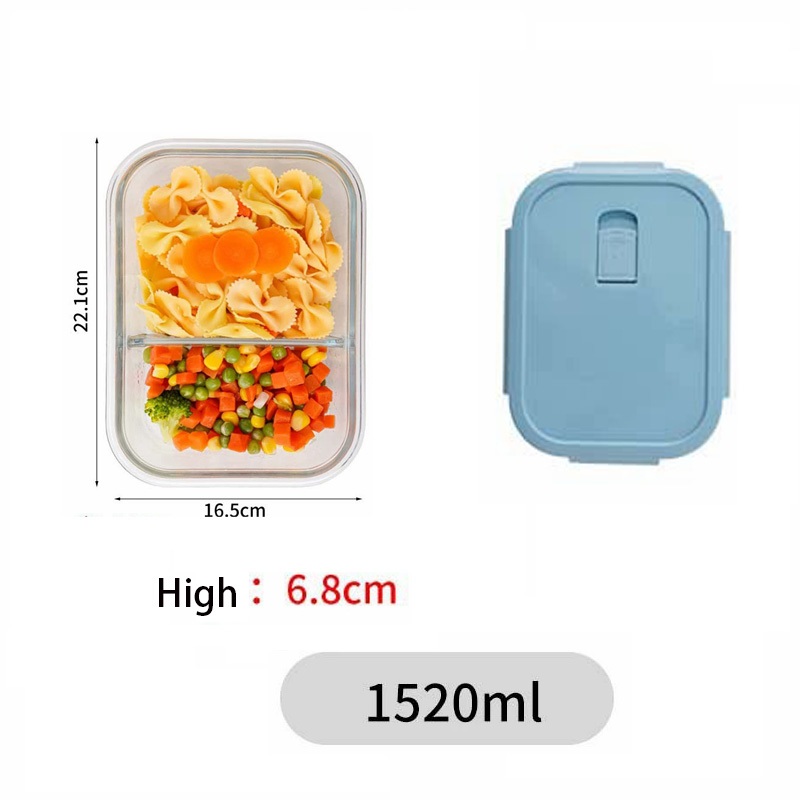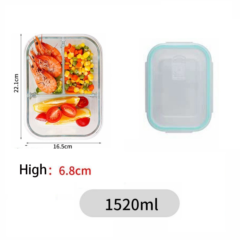 Glass Lunch Box Lid 3 Dividers Food Keeper Crisper Leak Proof Bento Microwaveable Food Container