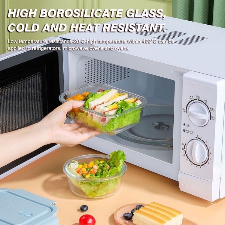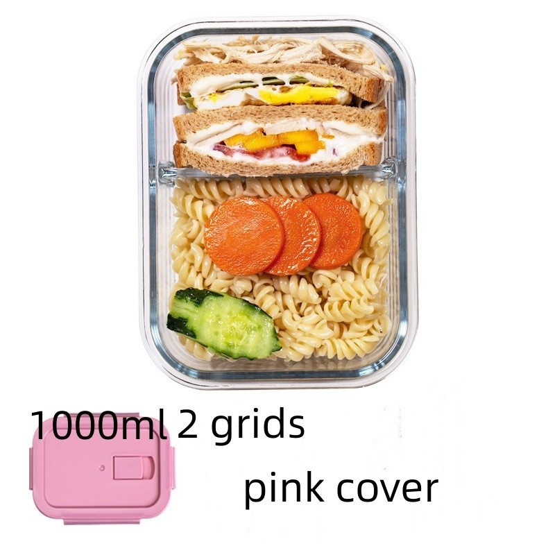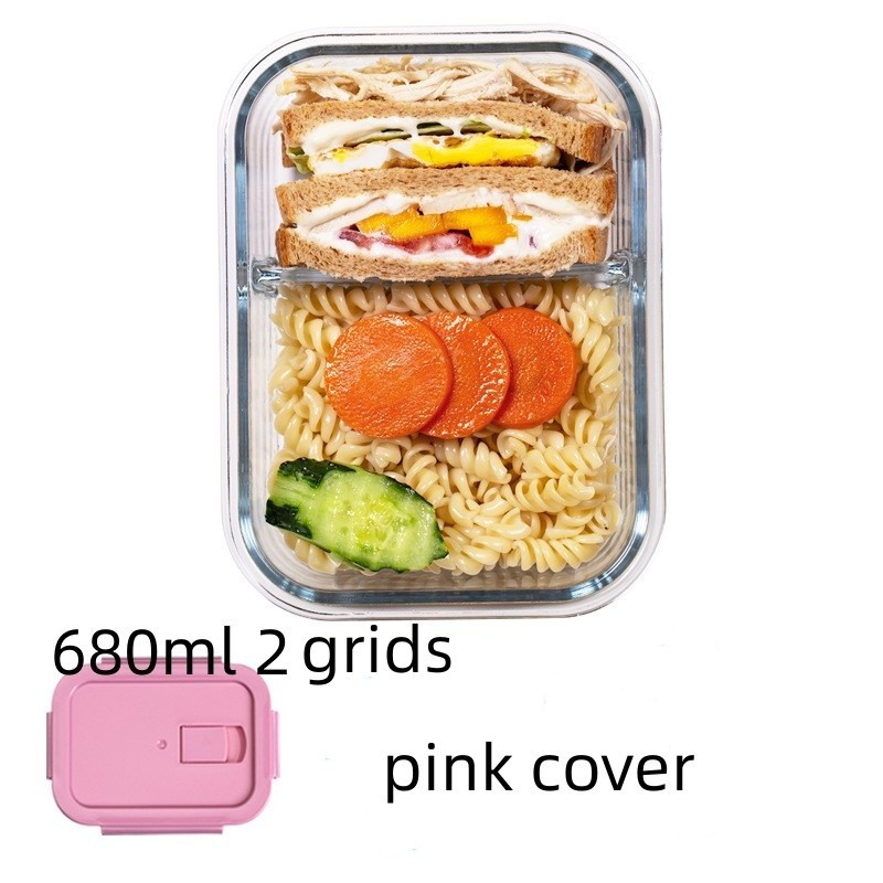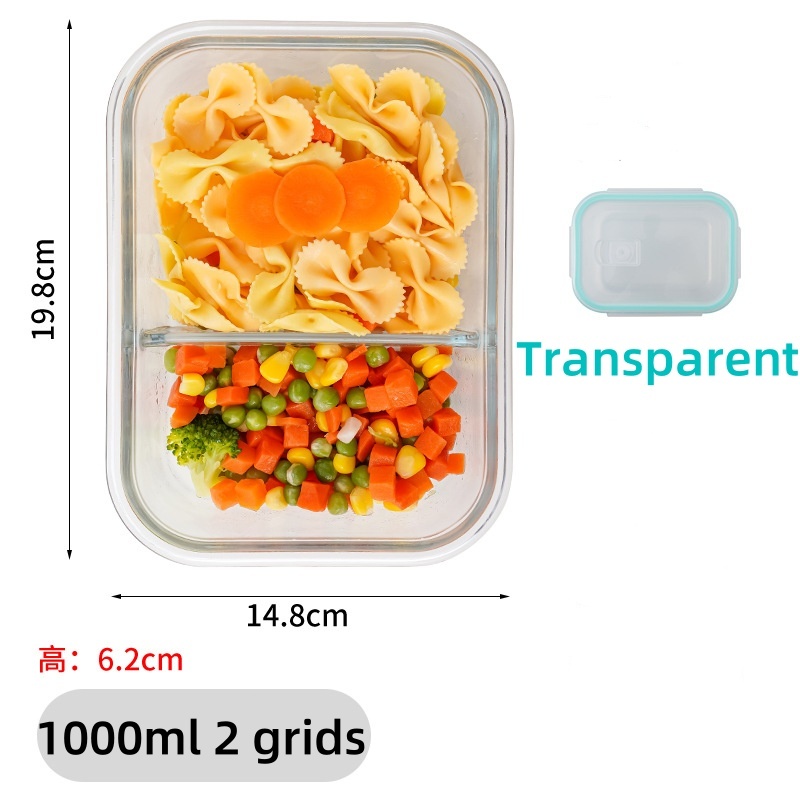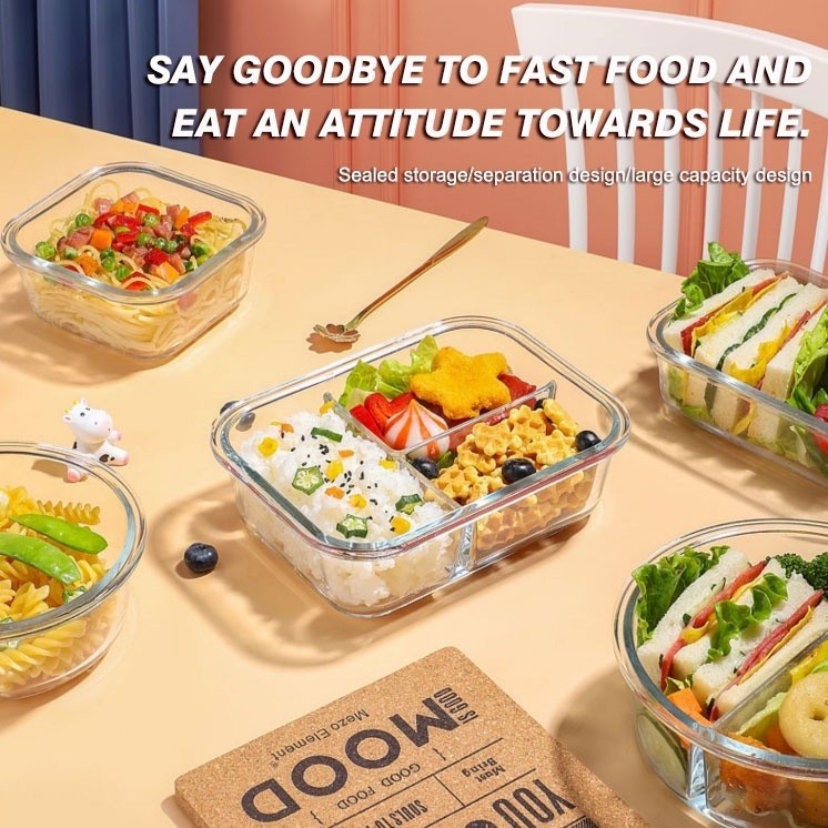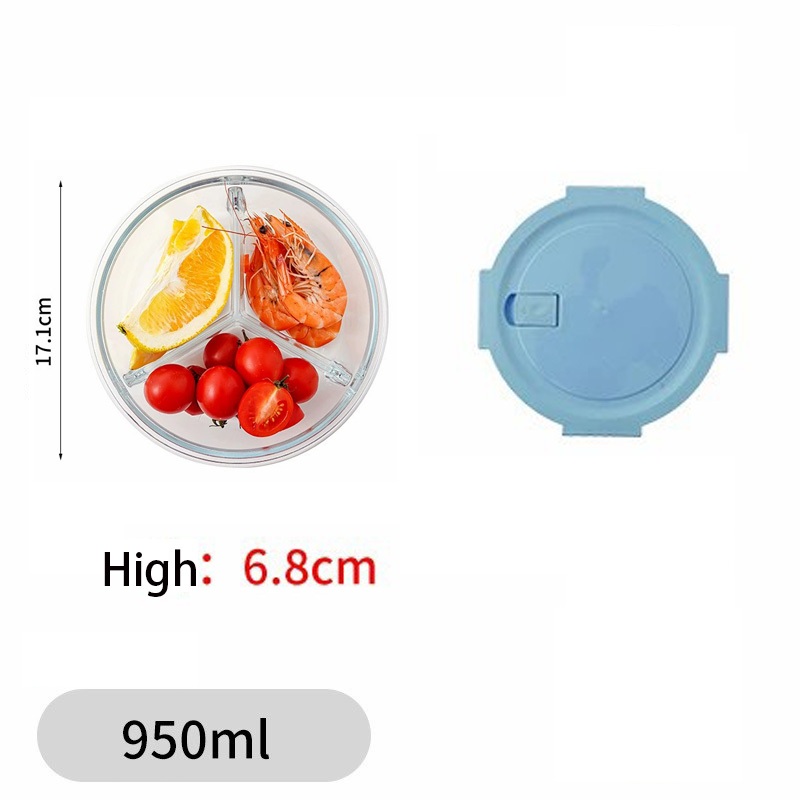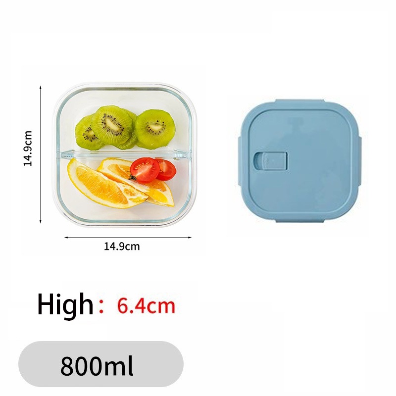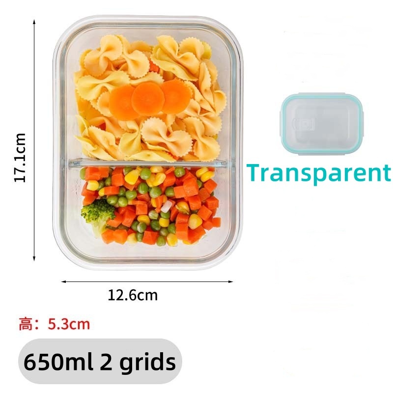 Glass Lunch Box Lid 3 Dividers Food Keeper Crisper Leak Proof Bento Microwaveable Food Container