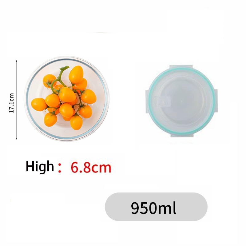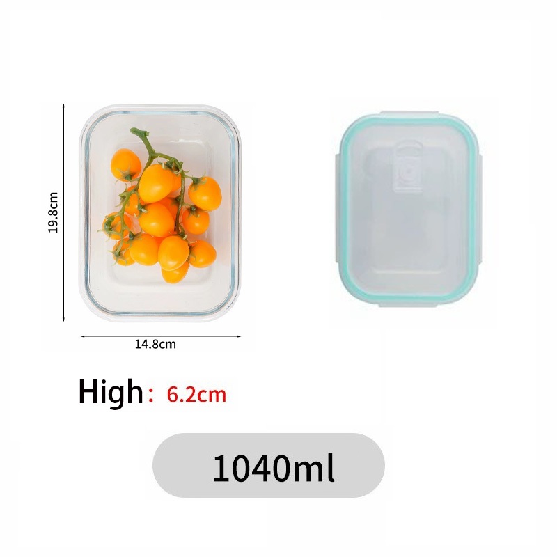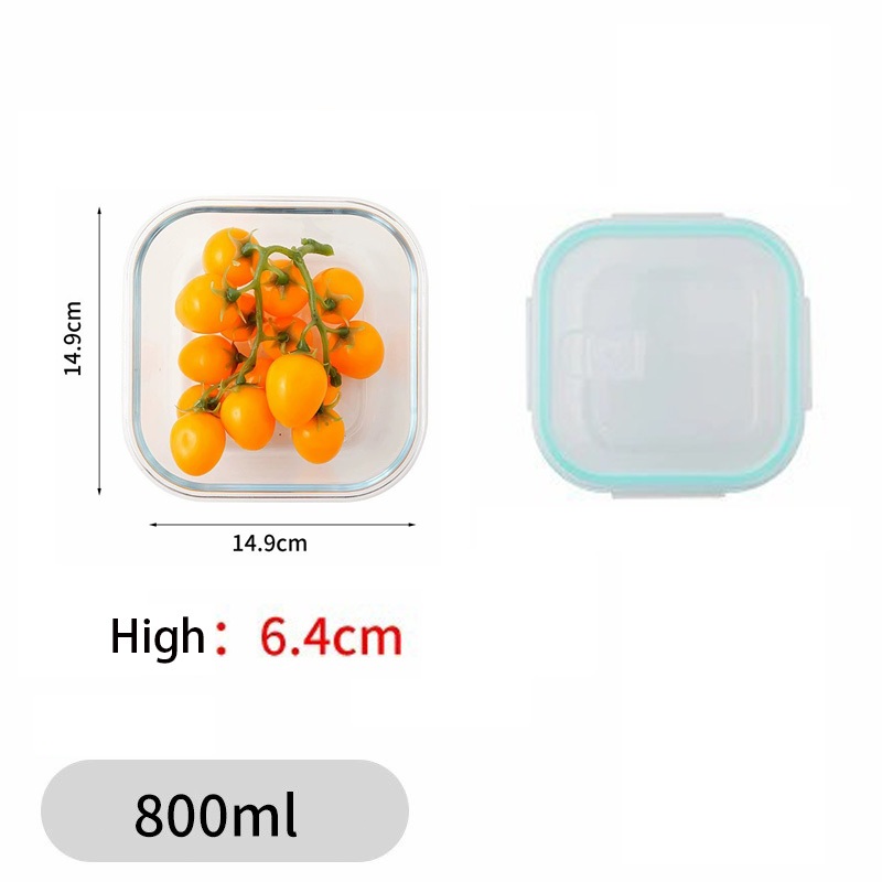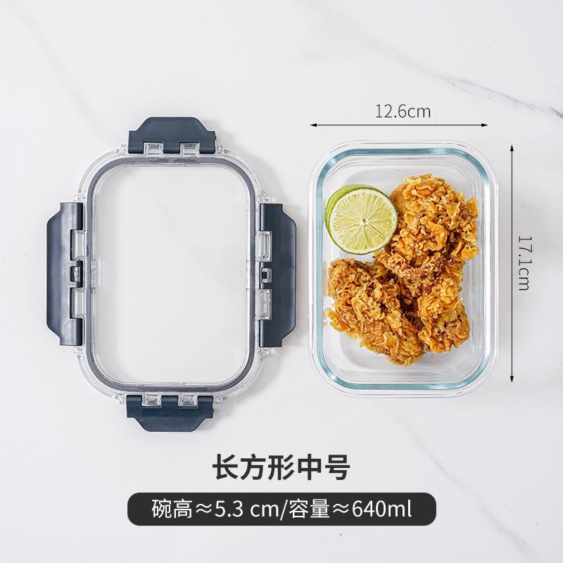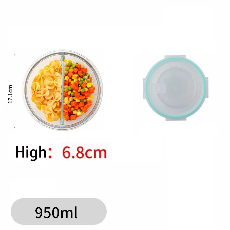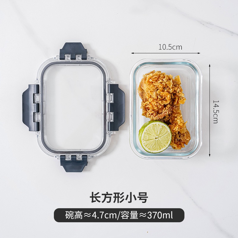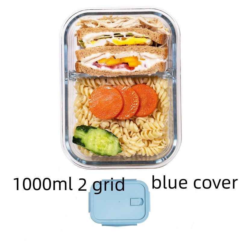 Glass Lunch Box Lid 3 Dividers Food Keeper Crisper Leak Proof Bento Microwaveable Food Container