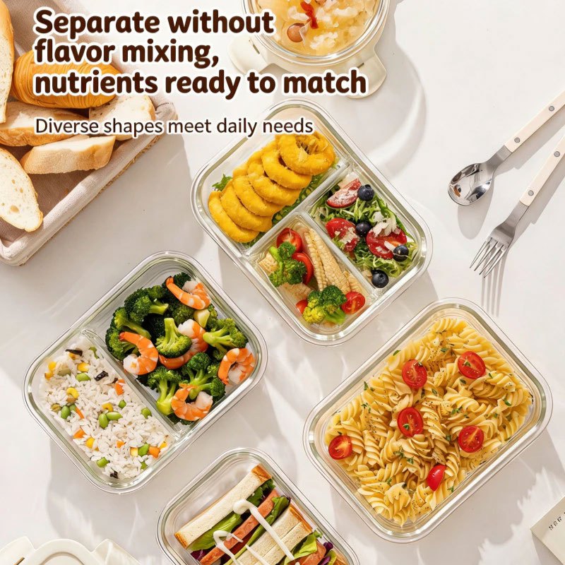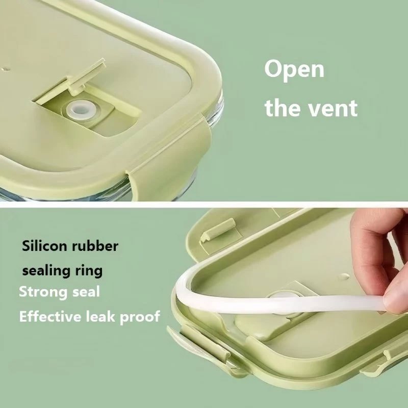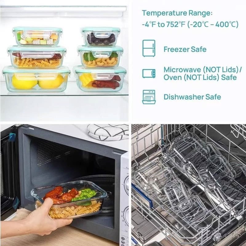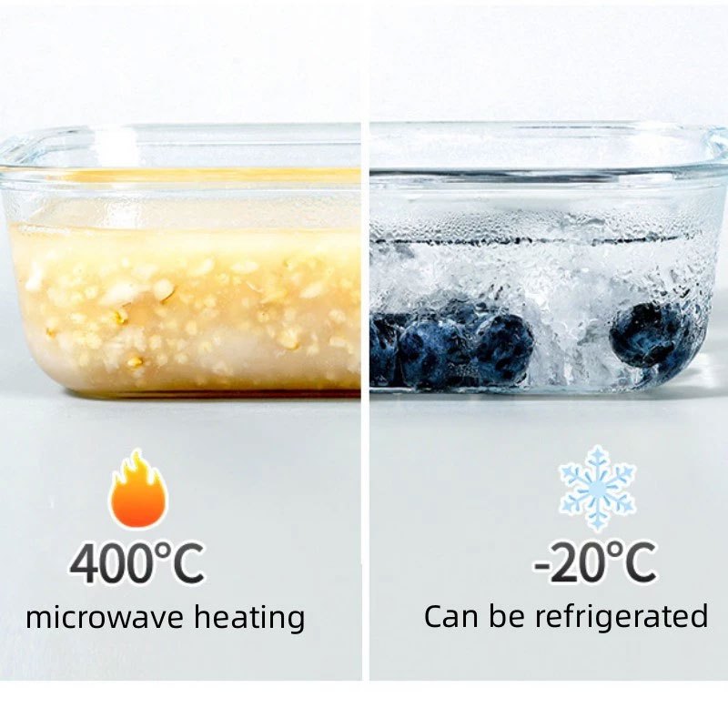 Borosilicate Glass Food Keeper Airtight Leakproof Crisper Microwaveable Oven Safe Heat Lunch Box