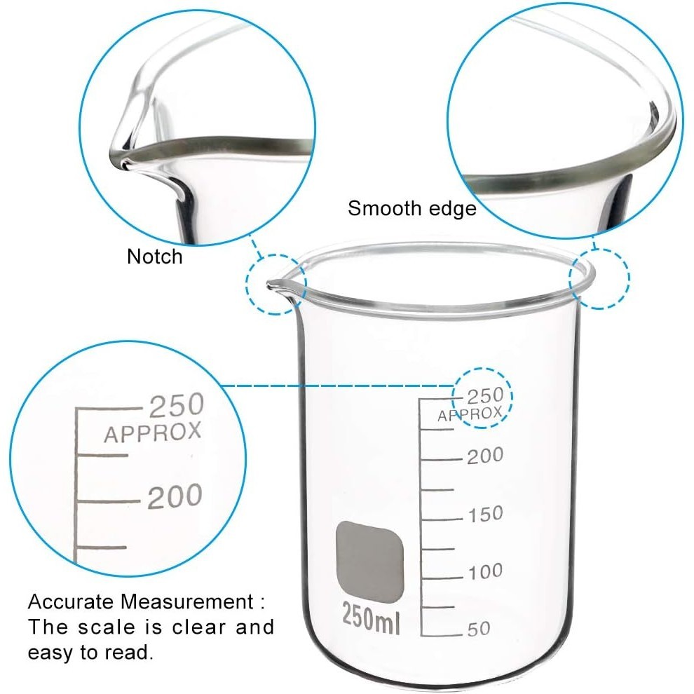 Glass Measuring Low Form Beaker Set 50ml 100ml 200ml 250ml Glass Graduated Beaker Set