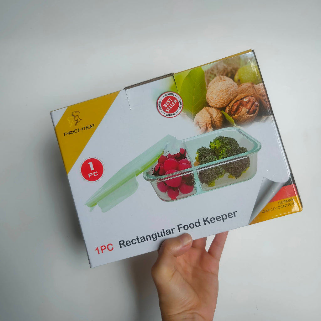 Leak-proof and Airtight Glass food keeper Bento Box with Divider - Microwave-Safe Glass Lunch Box
