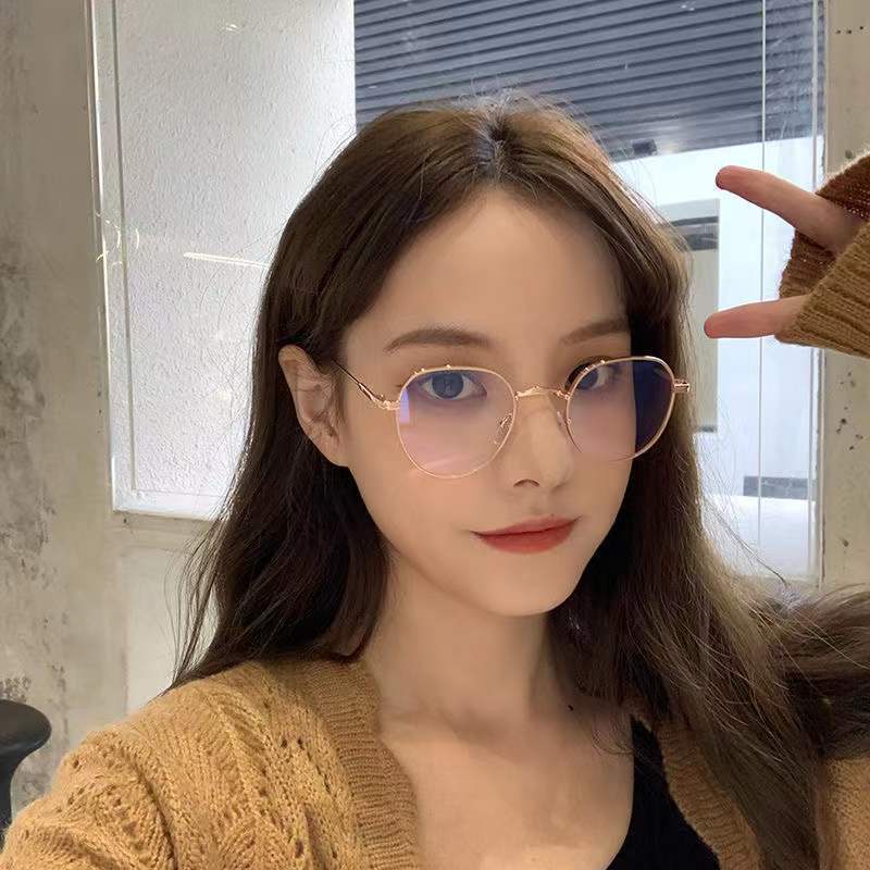 Glasses Korean Anti Rad Glasses Round Metal Frame Eyeglasses Women/men Replaceable Lens Eyeglasses Frames Eyeglass Anti Radiation Eyeglass for Woman