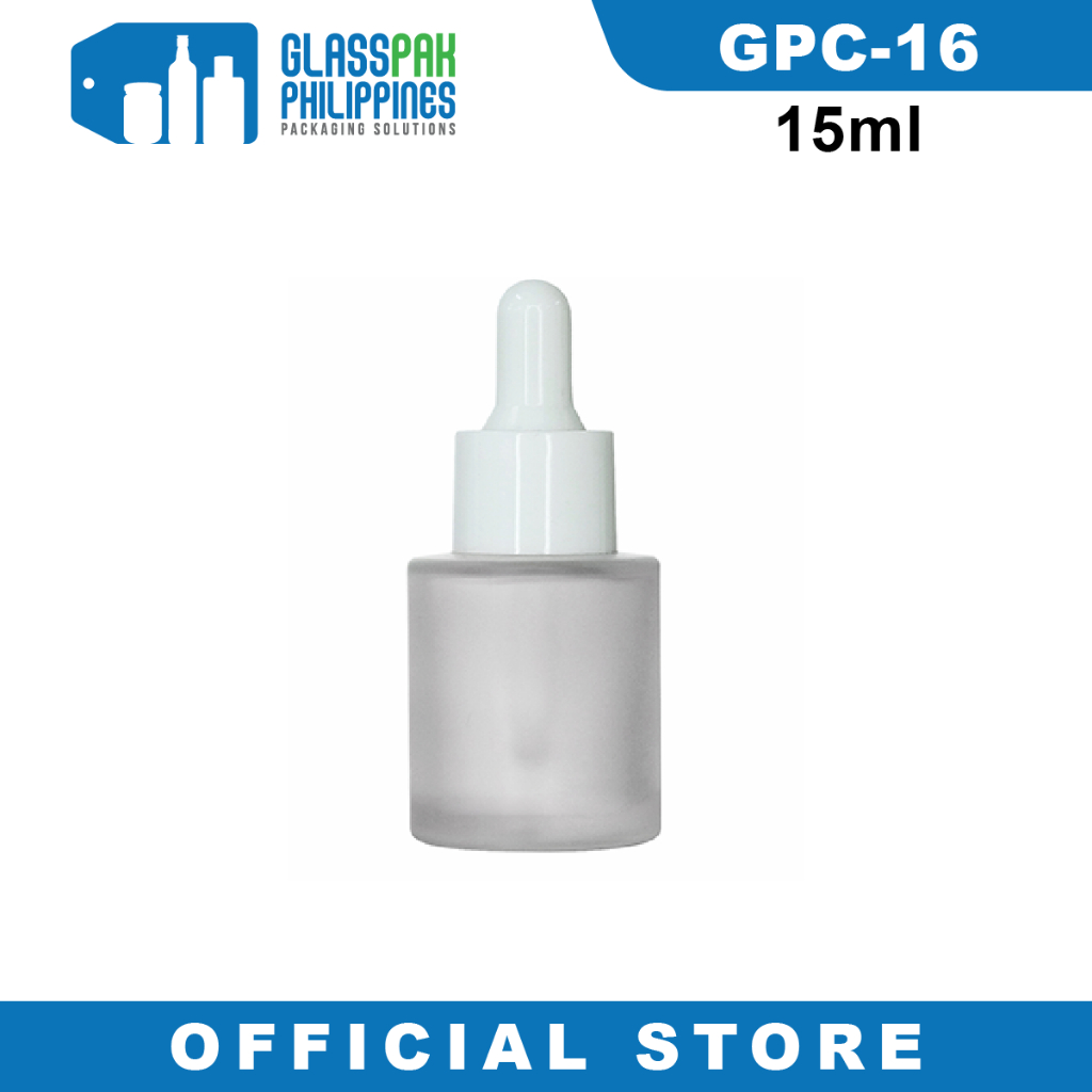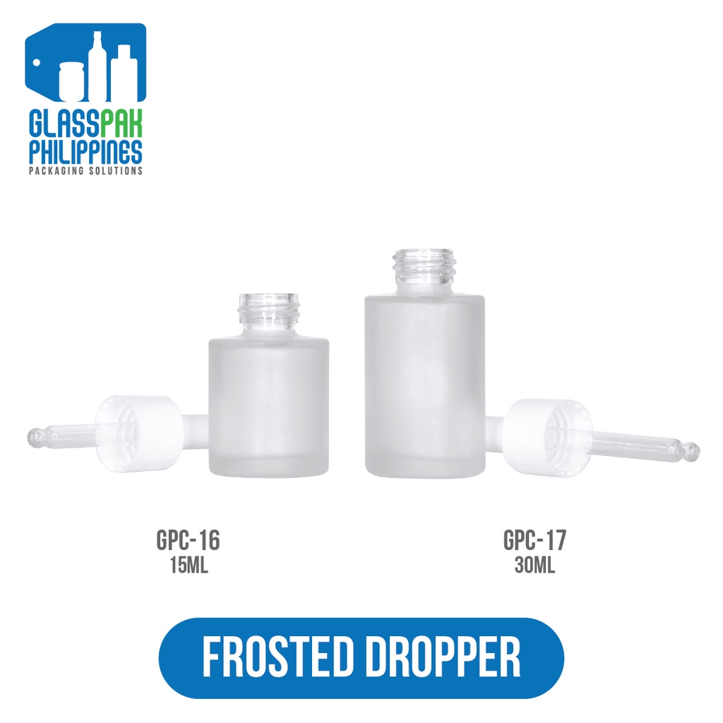 Glasspak 15ML 30ML Frosted Dropper Empty Glass Bottle Container With White Dropper Handle
