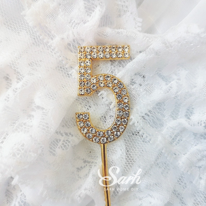 Glitter Alloy Rhinestone Number 1-9 Birthday Cake Topper for Birthday Decorations Girl Age Topper