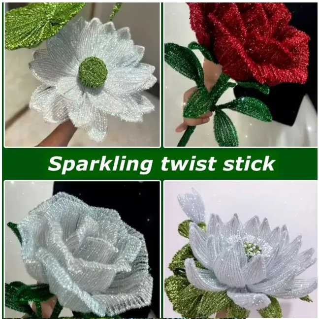 Glitter Fuzzy wire 100 pcs Shining chenille wire for flower fuzzy wire