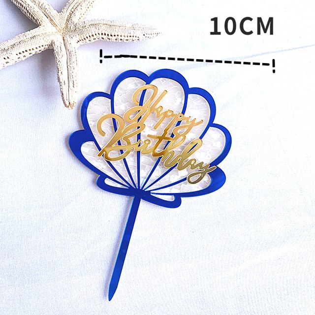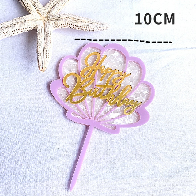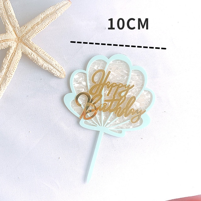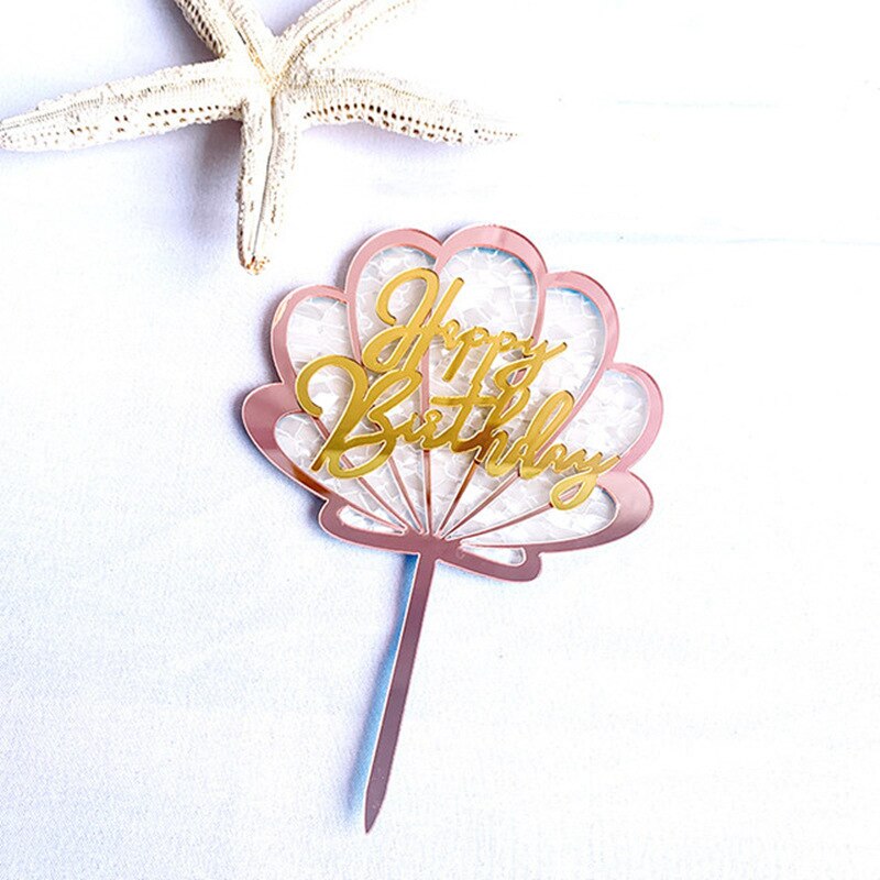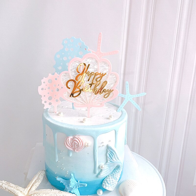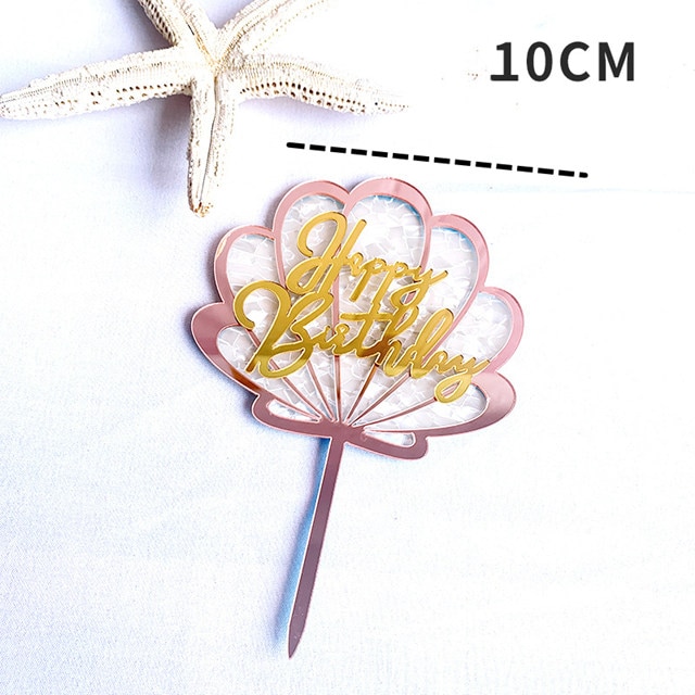Glittering Shell Birthday Cake Topper Pink Gold Coral Reef starfish happy Birthday cake Decoration Kids Birthday cupcake Toppers