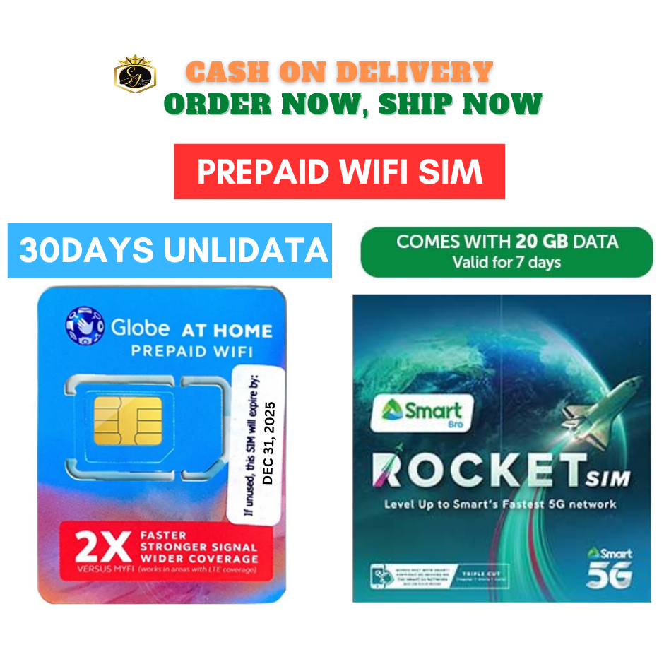 Globe at Home Prepaid Wifi Sim FREE 30DAYS UNLIDATA/20GB DATA and Rocket Sim 20GB