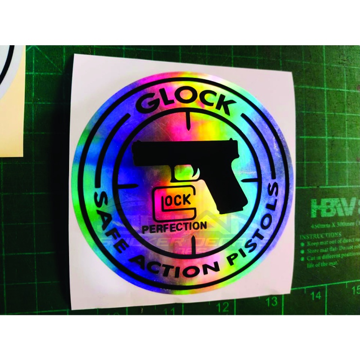 Glock Logo Round Sticker Decals for Car & Motorcycles 4x4 inches Reflectorized & Hologram