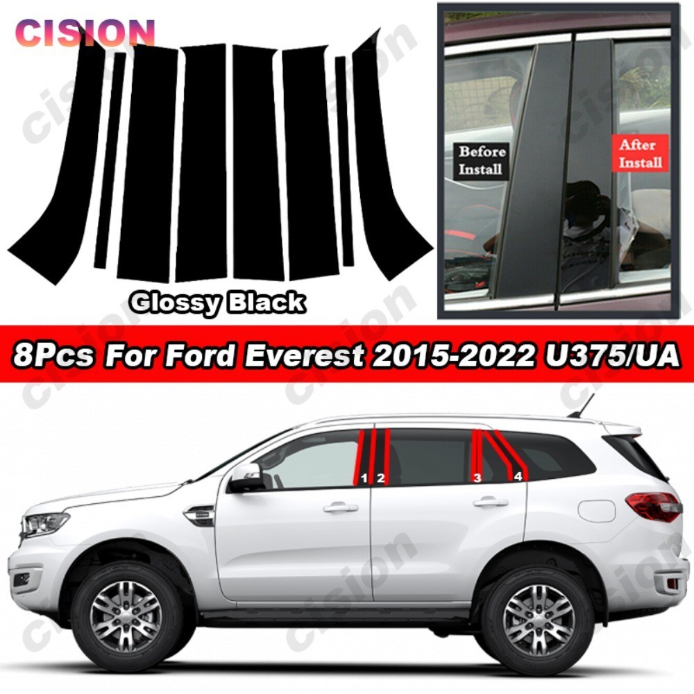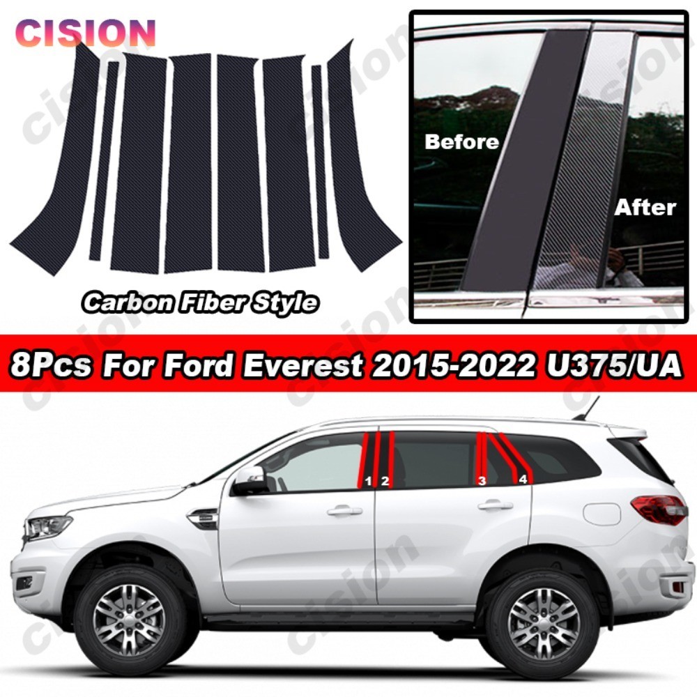 Glossy Black PC Material Car Door Window Center Middle B C Pillar Post Column Cover Mirror Effect Trim Carbon Fiber Sticker For Ford Everest 2015 2016 2017 2018 2019 2020 2021 2022