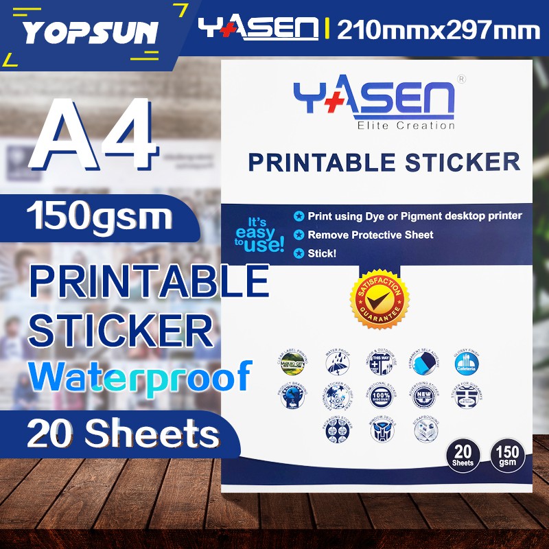 Glossy YASEN Vinyl Sticker A4 20 Sheets 150GSM
