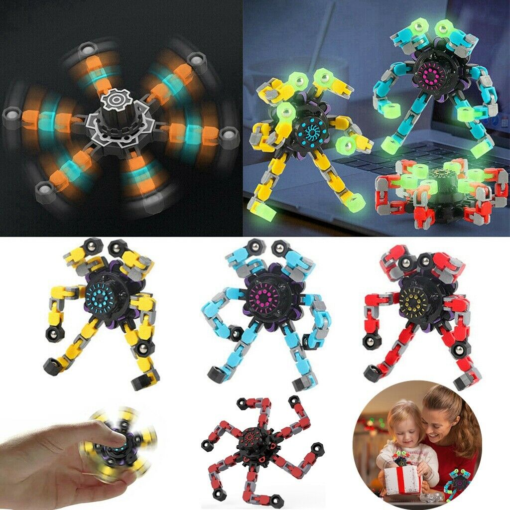 Glowing In The Dark Deformable Fingertip Spin Top Fidget Spinner Transformable Robot Gyro Toy Gift