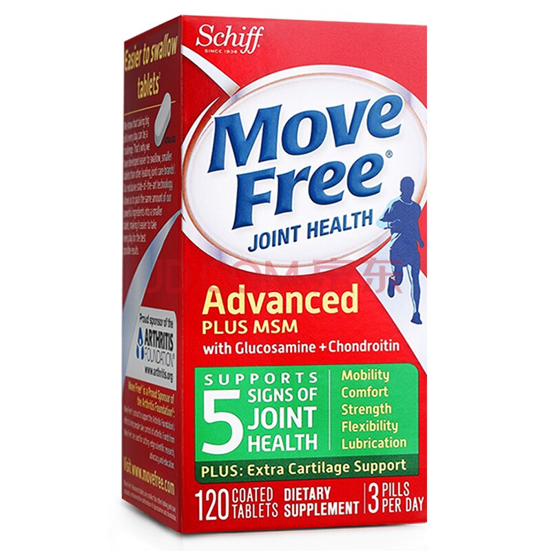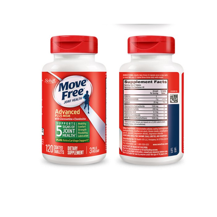Glucosamine & Chondroitin Plus MSM Advanced Joint Health Supplement Tablets, Move Free (120 count in)MSM Glucosamine Hydrochloride Bone Vitality Joint Care Nutrition for Middle aged and Elderly People