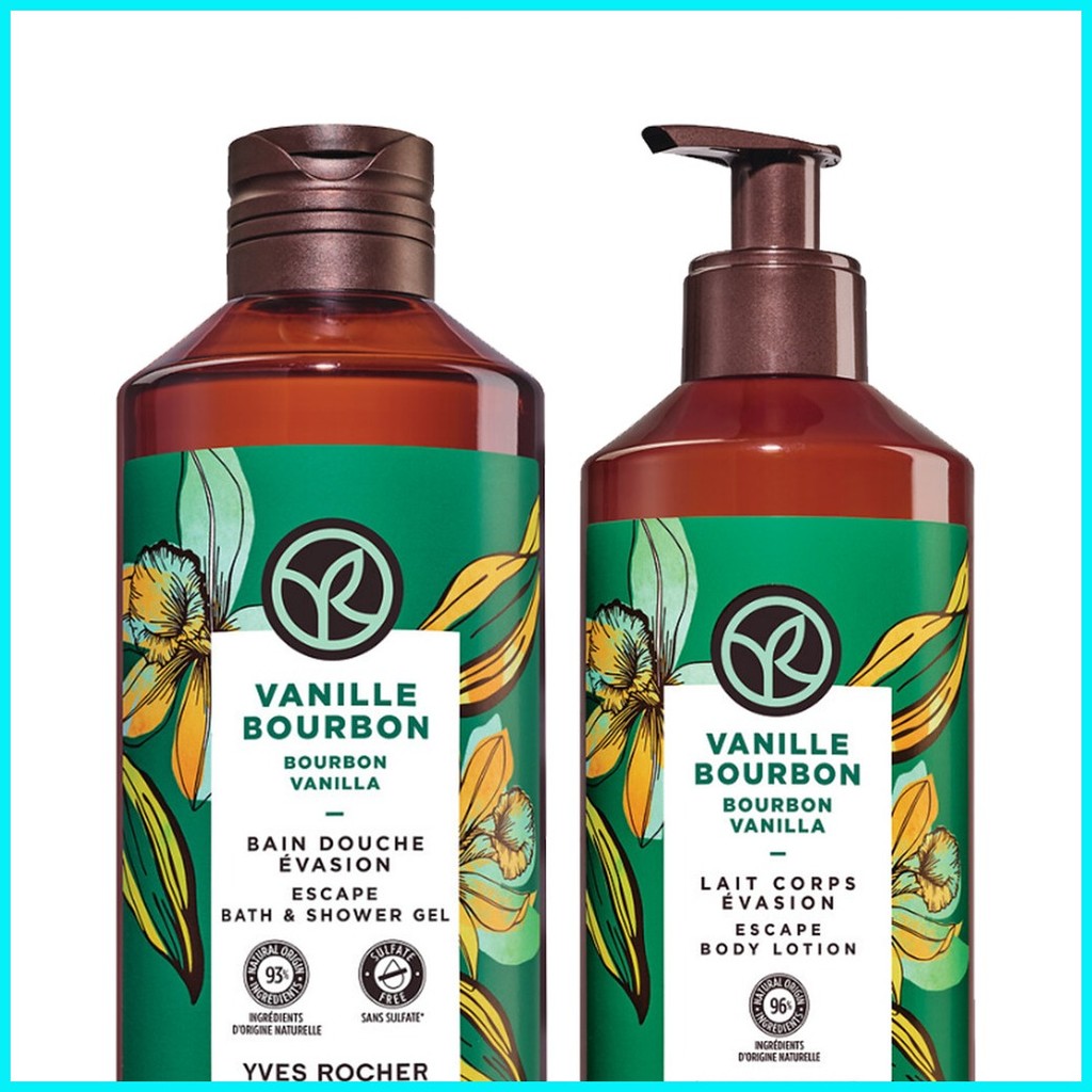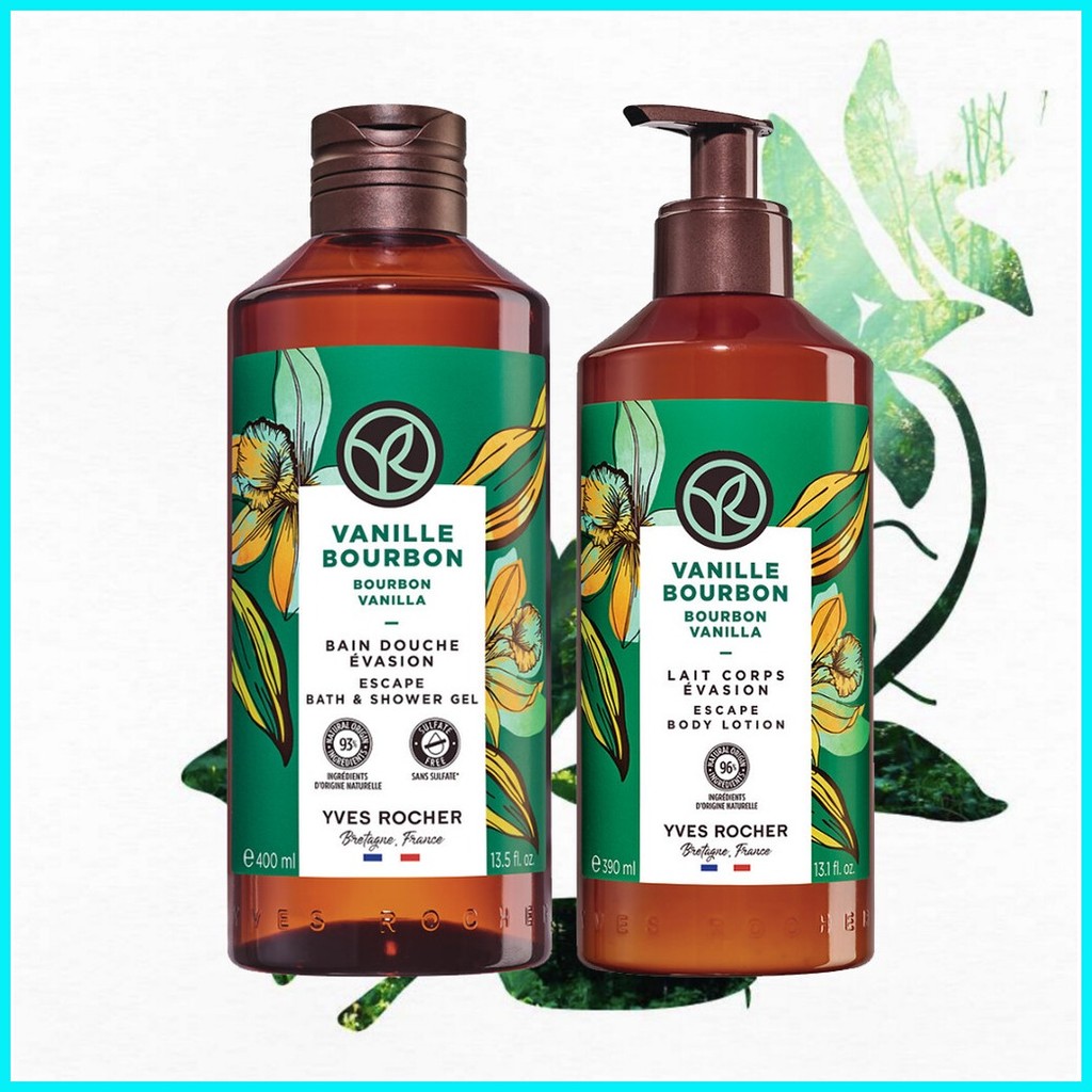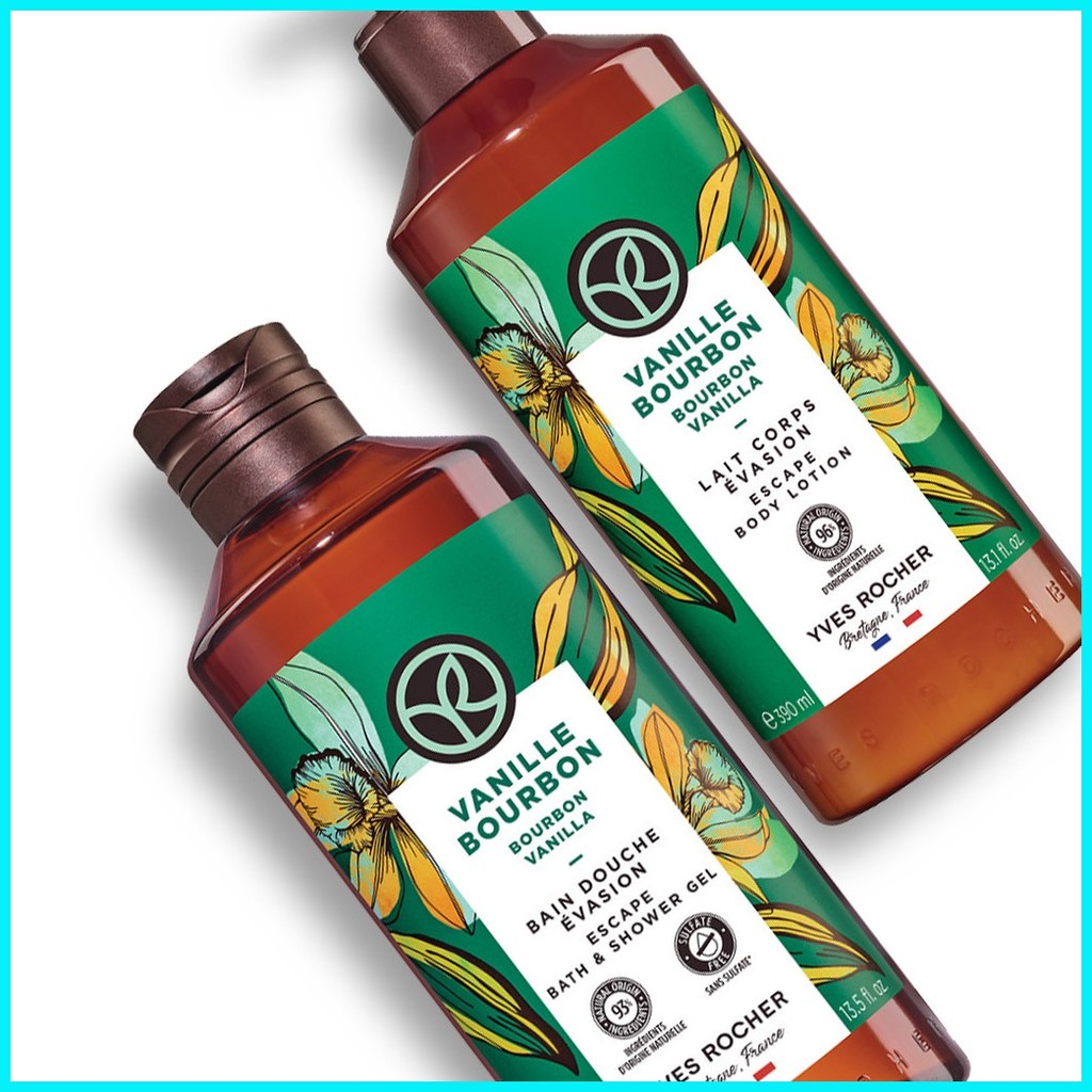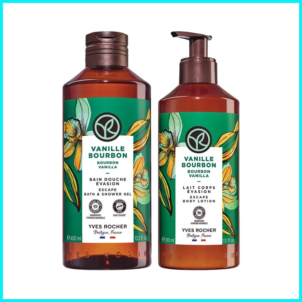 YVES ROCHER Bourbon Vanilla Body Wash Shower Gel 400ml and Lotion Moisturizer Bundle 390ml Scented