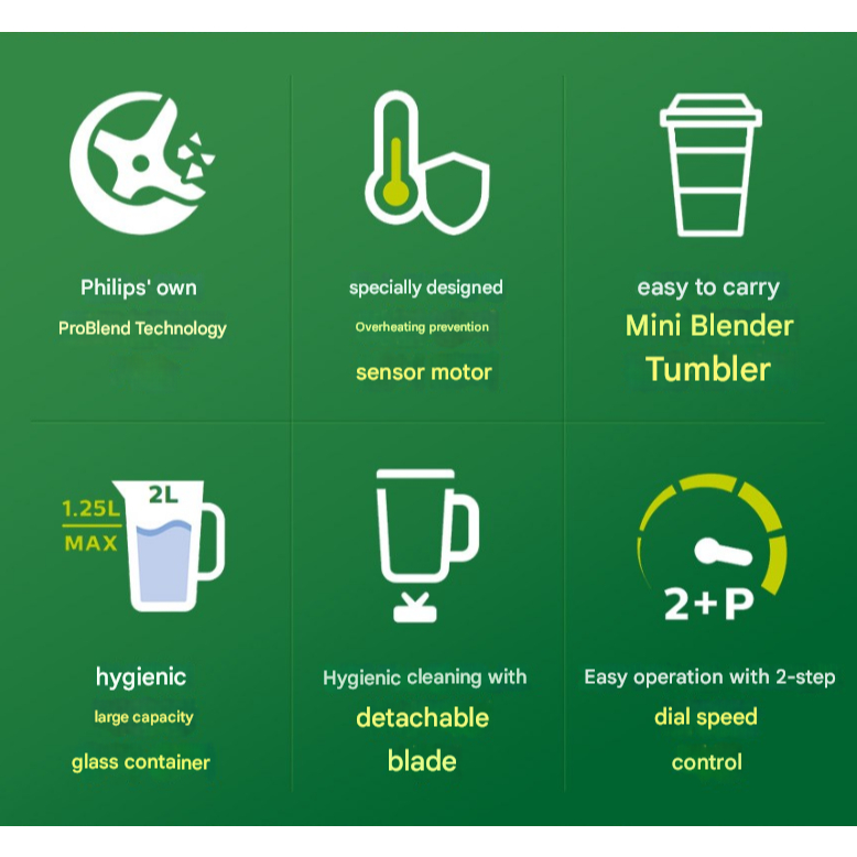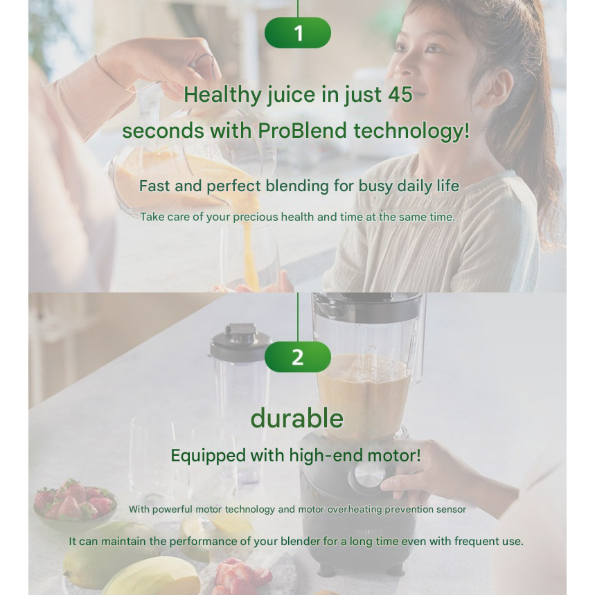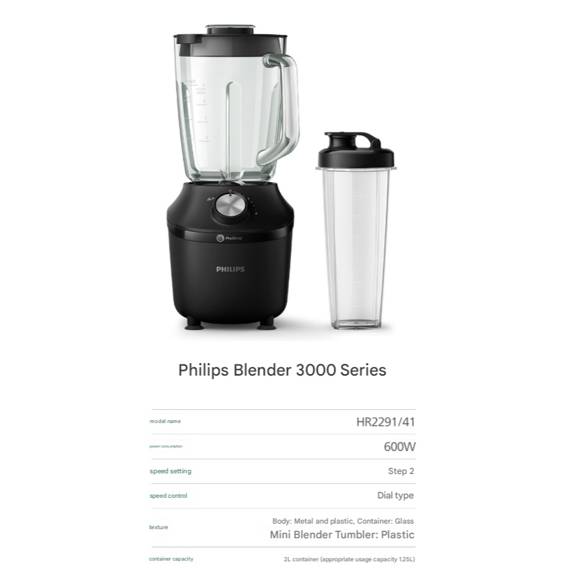 Philips Blender 3000 Series HR2291/41 + Tumbler GlassJar PortableTumbler QuickSmoothies