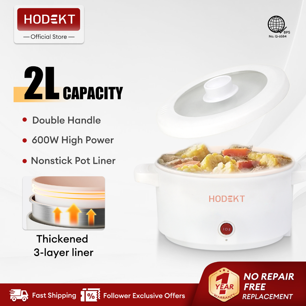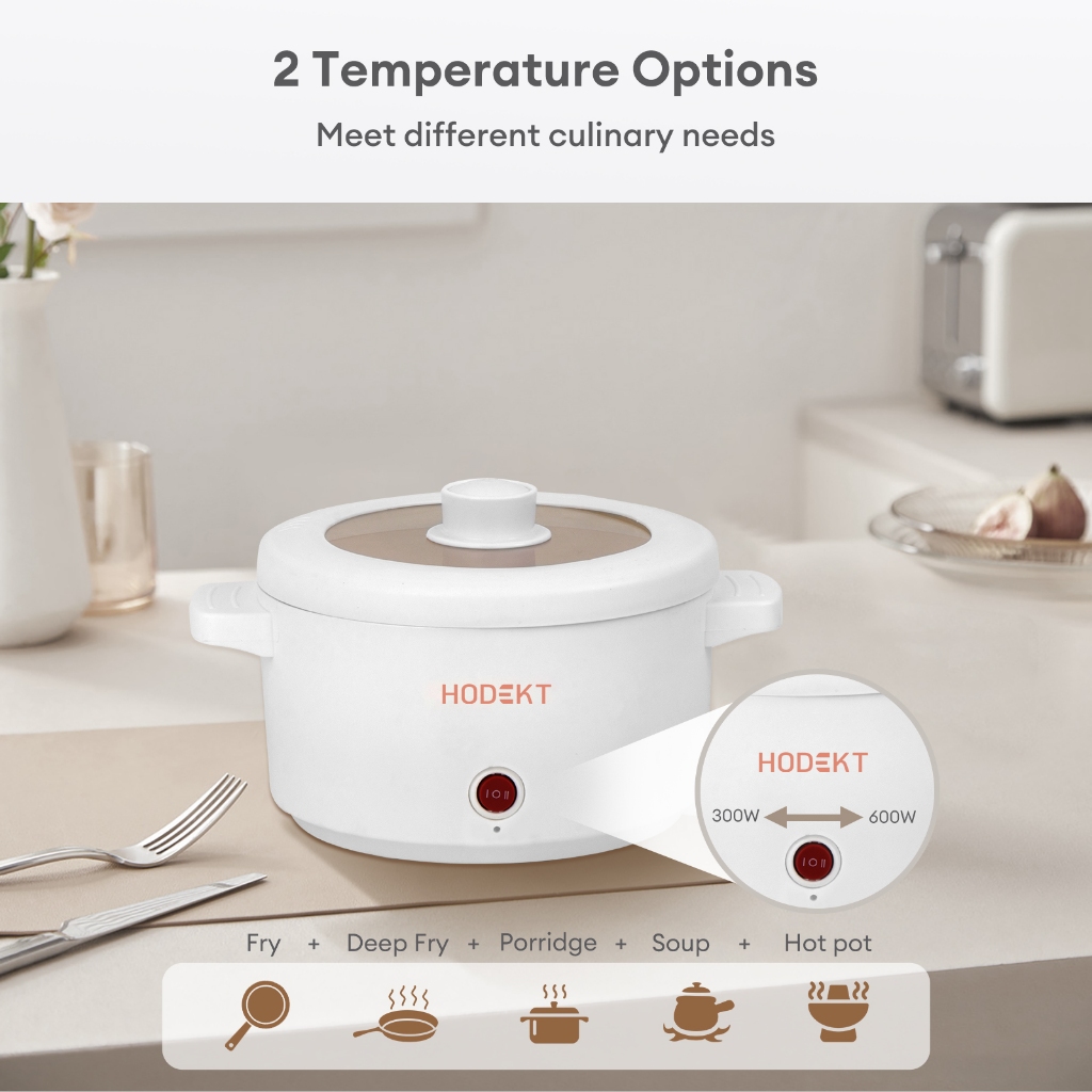 HODEKT 2L Electric Cooker Multifunctional Rice Cooker Hot pot Cooker Non Stick Pan