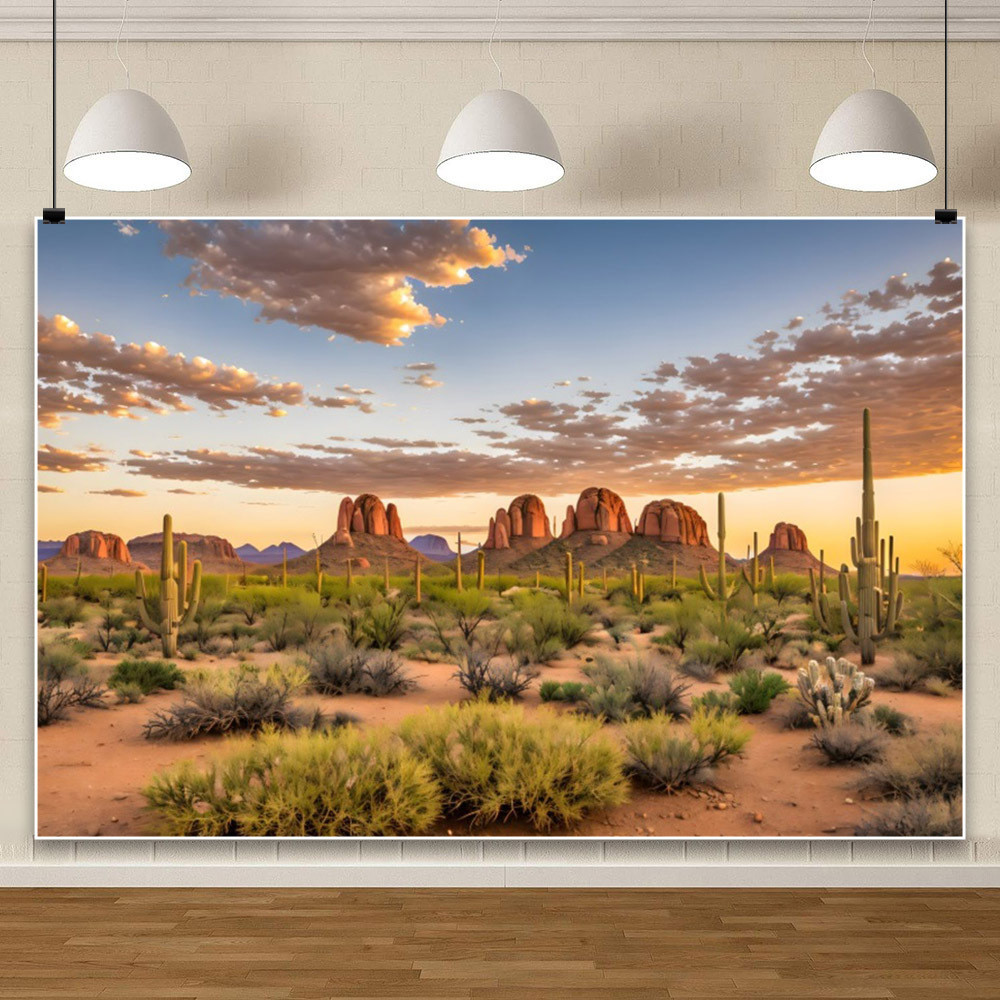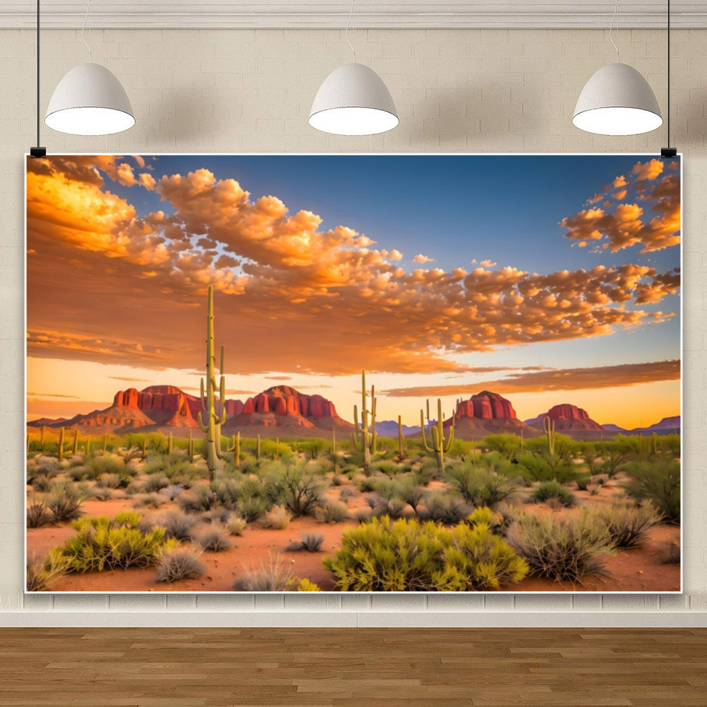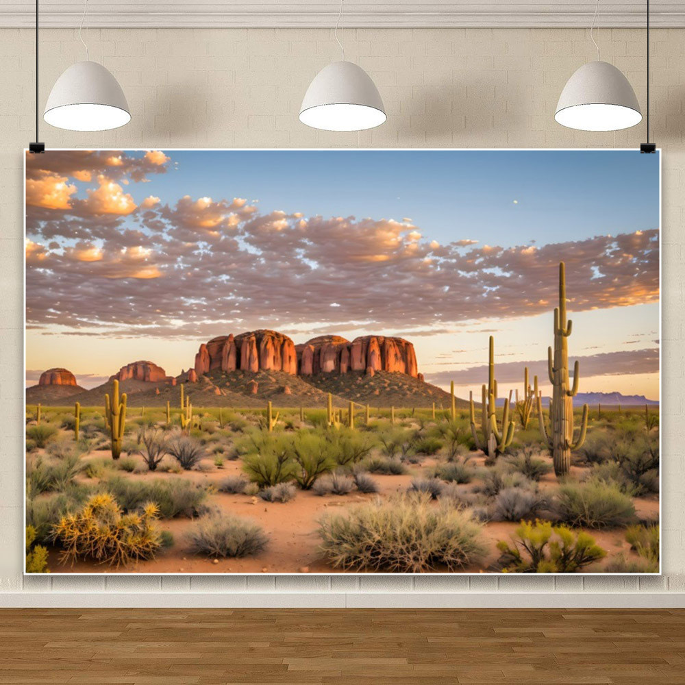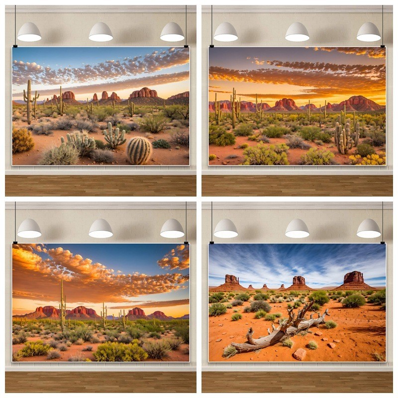 Gobi cacti Desert Old Tree Shrub Deserted Building Cloud Sunrise Natural Scenic Photo Backgrounds Photography Backdrop Photo Studio