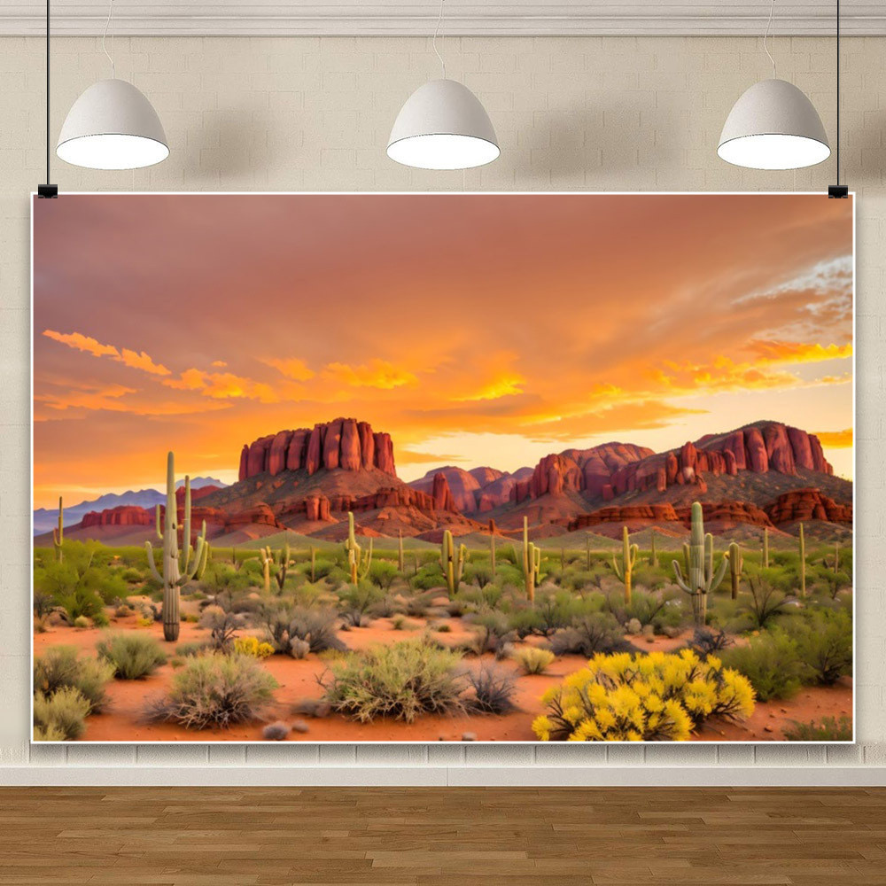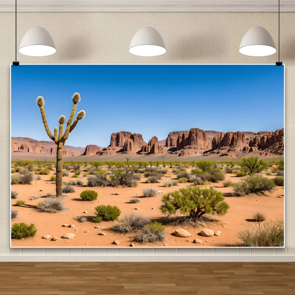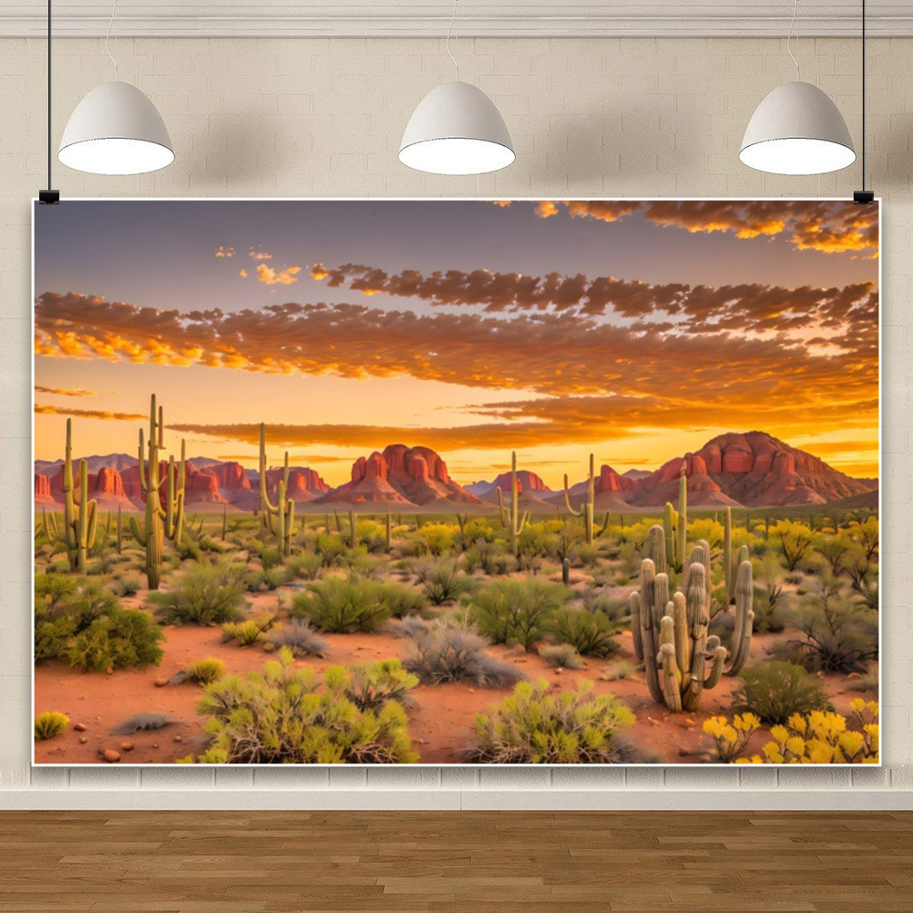Gobi cacti Desert Old Tree Shrub Deserted Building Cloud Sunrise Natural Scenic Photo Backgrounds Photography Backdrop Photo Studio