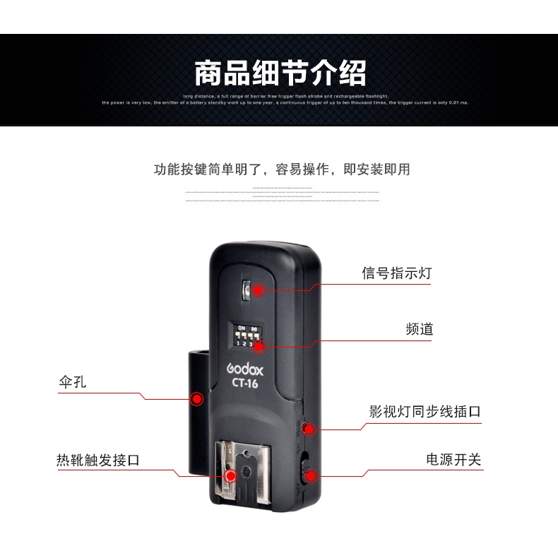 Godox CT16 Flash Trigger Hot Shoe Flashing Light Studio Outdoor Shooting Set Universal Type