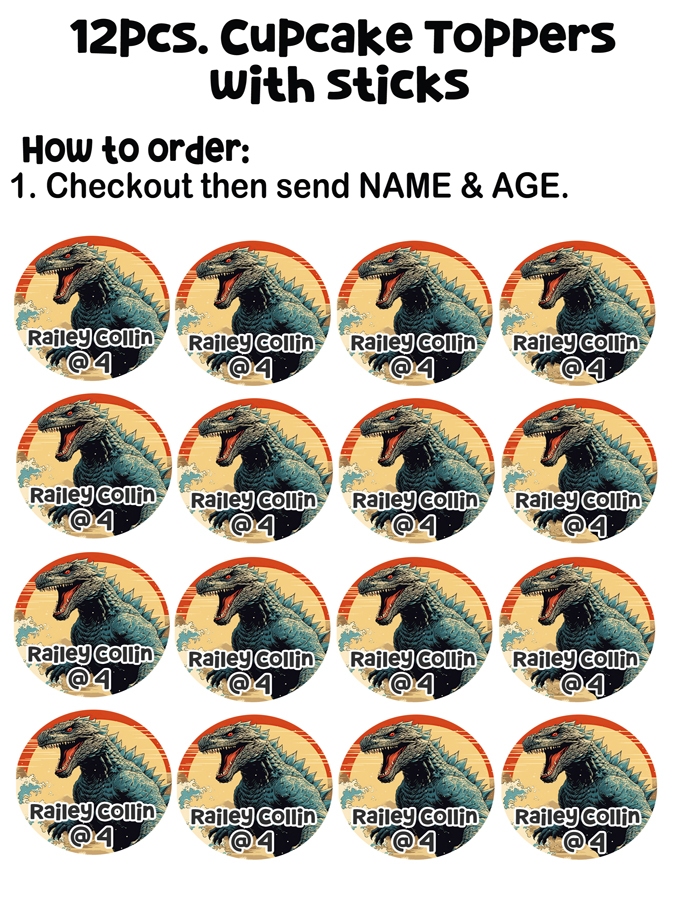Godzilla Cake Topper / Birthday Cake Topper with FREE NAME
