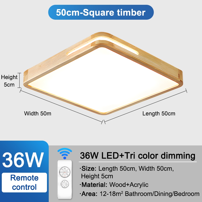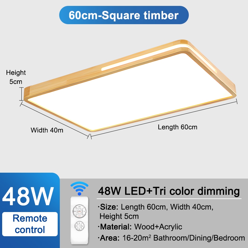 Gogeous Ceiling Led Light With Remote Tri Color Led Ceiling Wooden Frame Light Lights For Living Room/ Bedroom/Library