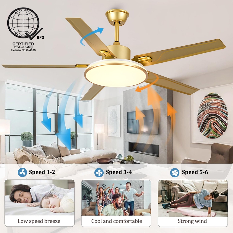 Gogeous Nordic Ceiling Fan With Light Ceiling Fan Celing Light Tri Color 40cm Big Lighting DC Motor For Living Room Bedroom 42/48/52 Inch