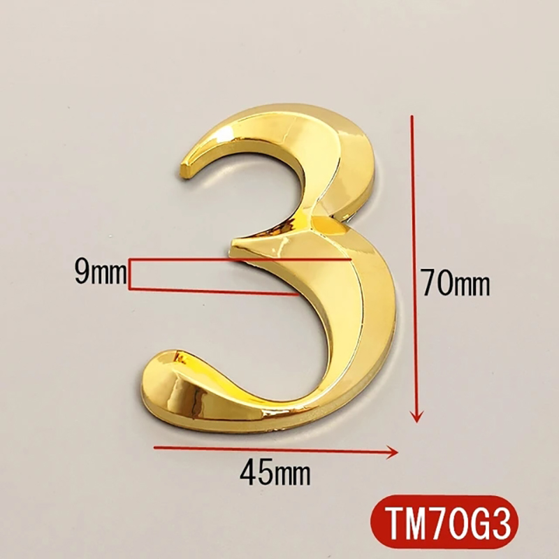 Gold 3D 7CM Self Adhesive House Number Sign Number Digit Apartment Hotel Office Address Street Number Stickers Door Plate Sign