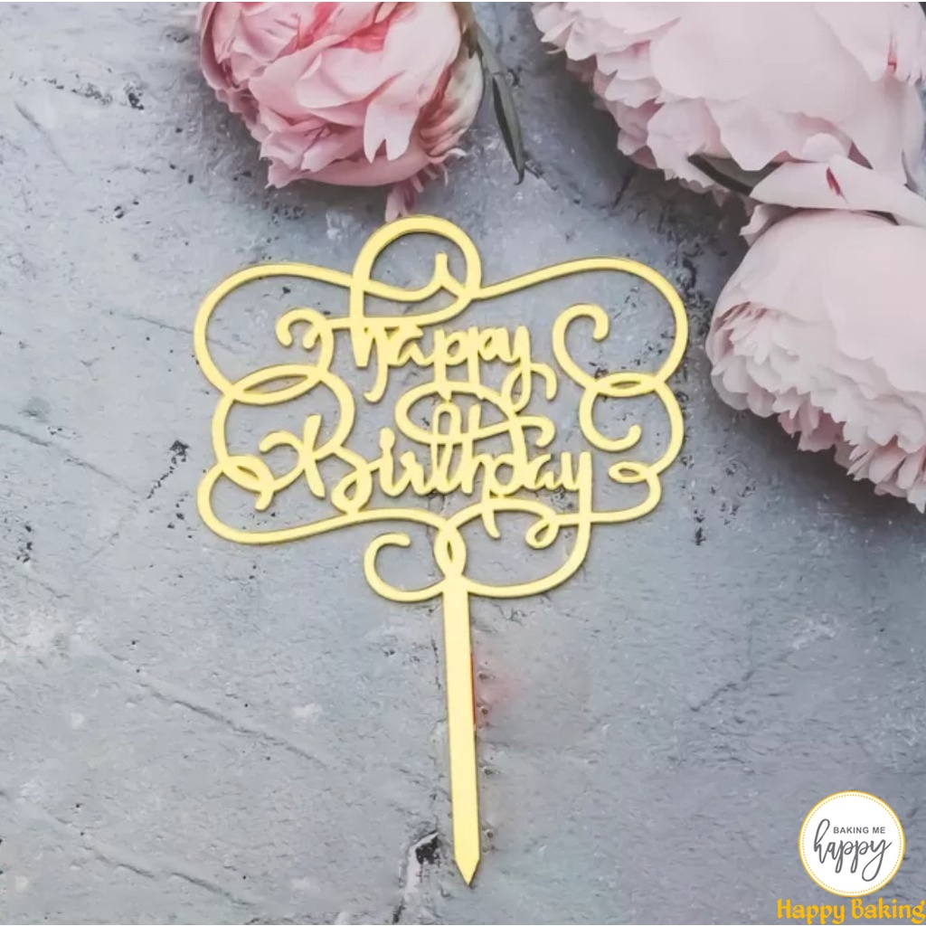 Gold Cake Topper Acrylic Cake Topper Happy Birthday and Wedding Cake Topper Cake Decoration