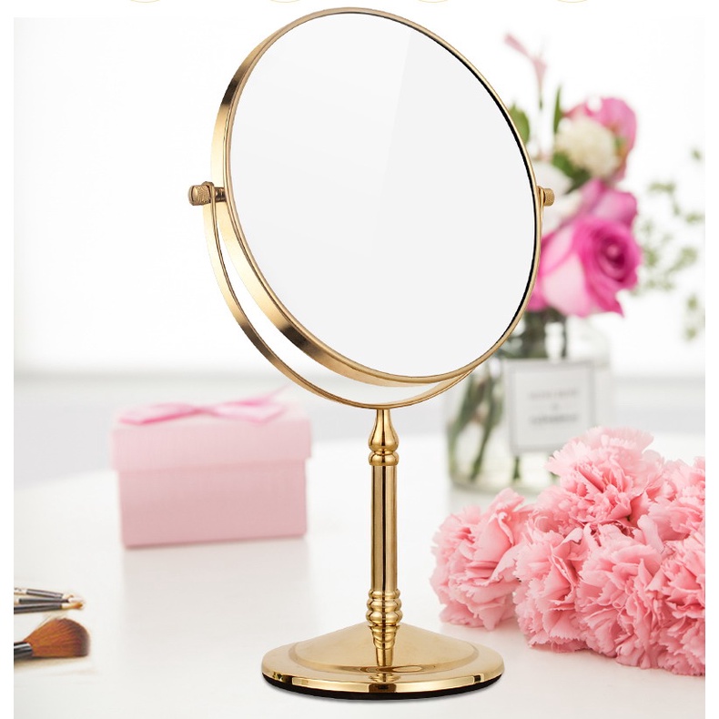 Gold Color Brass 8 Inch Makeup Mirror 360 Rotating Desktop Stand 3x Magnifying Cosmetic Mirror Double Sided Vanity Makeup Mirror mba641