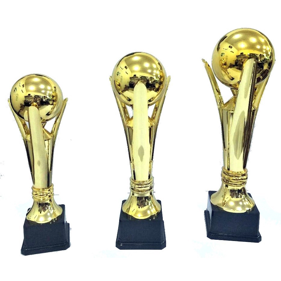 Gold Metal Trophy BALL W/3 SIDES Award with Base