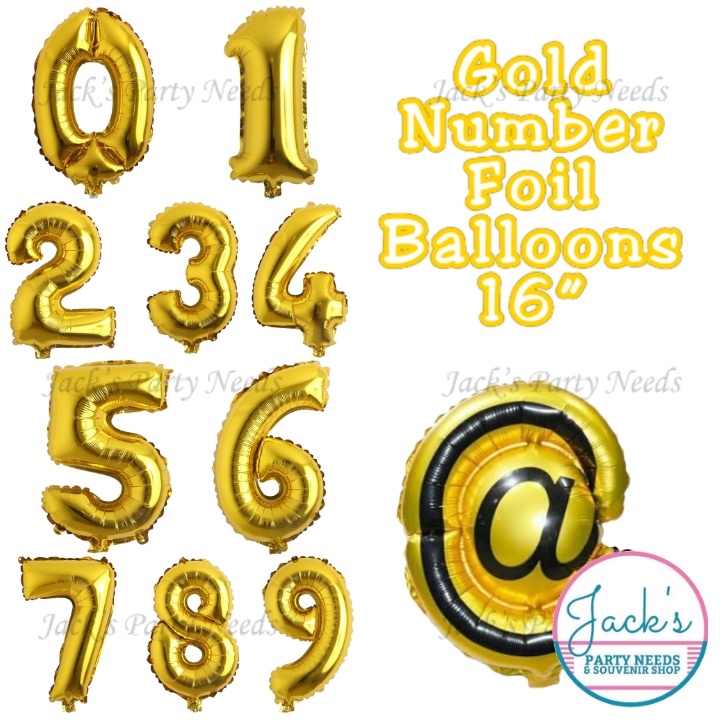 Gold Number Foil Balloons 16 inches 0 to 9, and AT sign