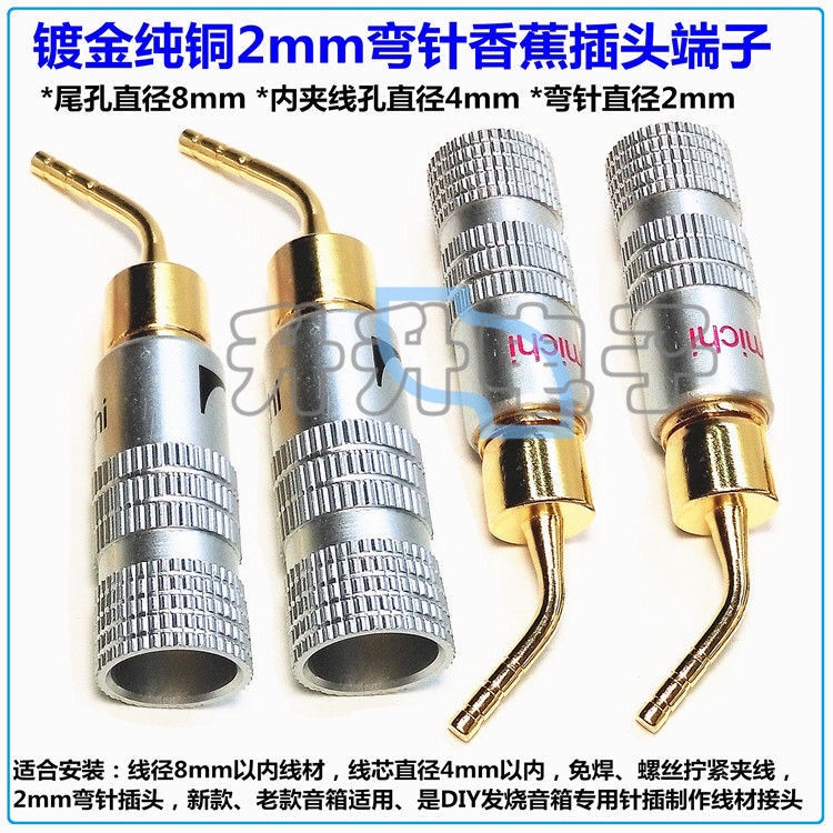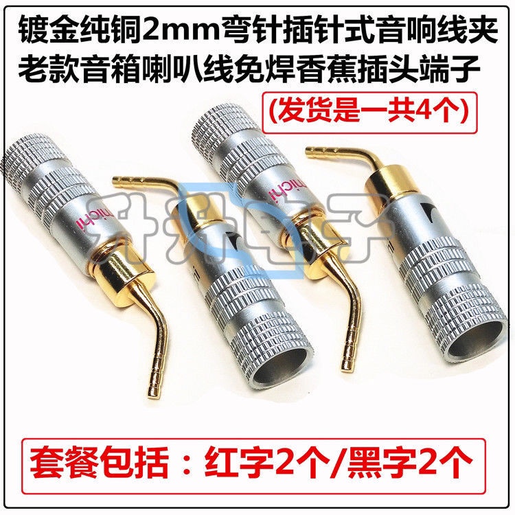 Gold-Plated Pure Copper2mmCurved Pin Plug-in Audio Cable Clip Old Speaker Horn Wire Welding-Free Banana Plug Terminal