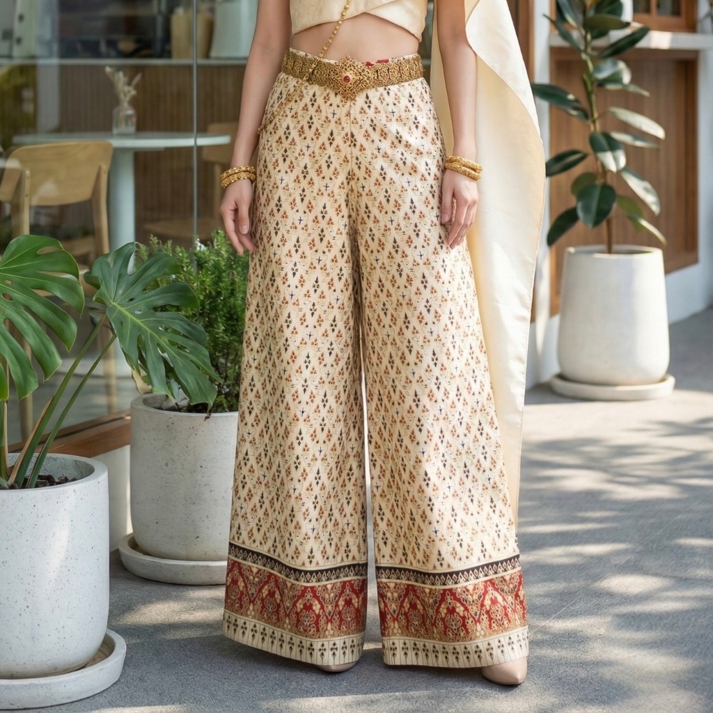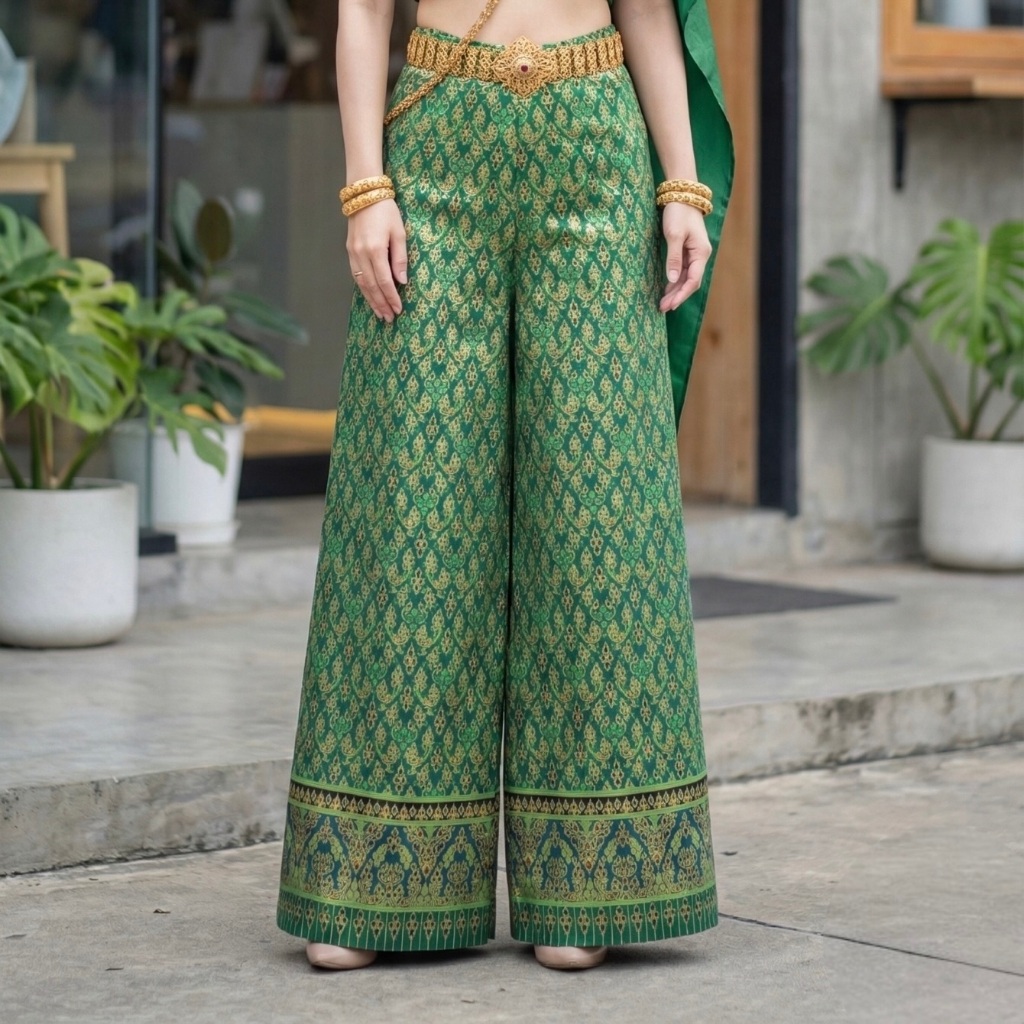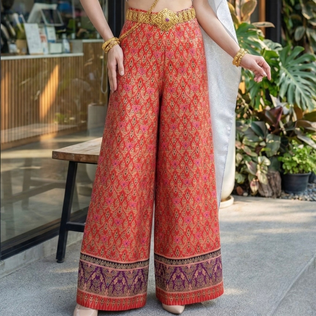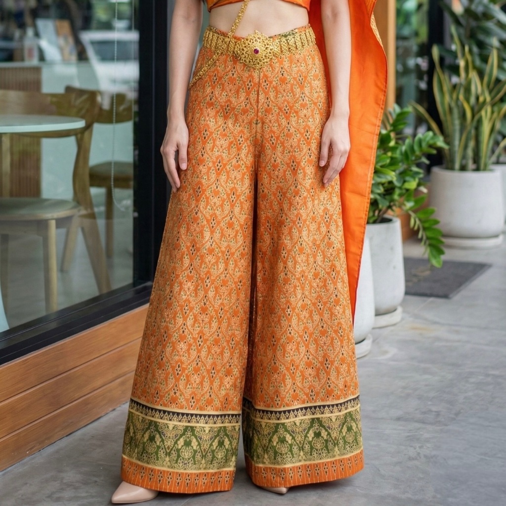 Gold Printed Fabric Pants Beautiful Shiny Color Does Not Fade. No Peeling